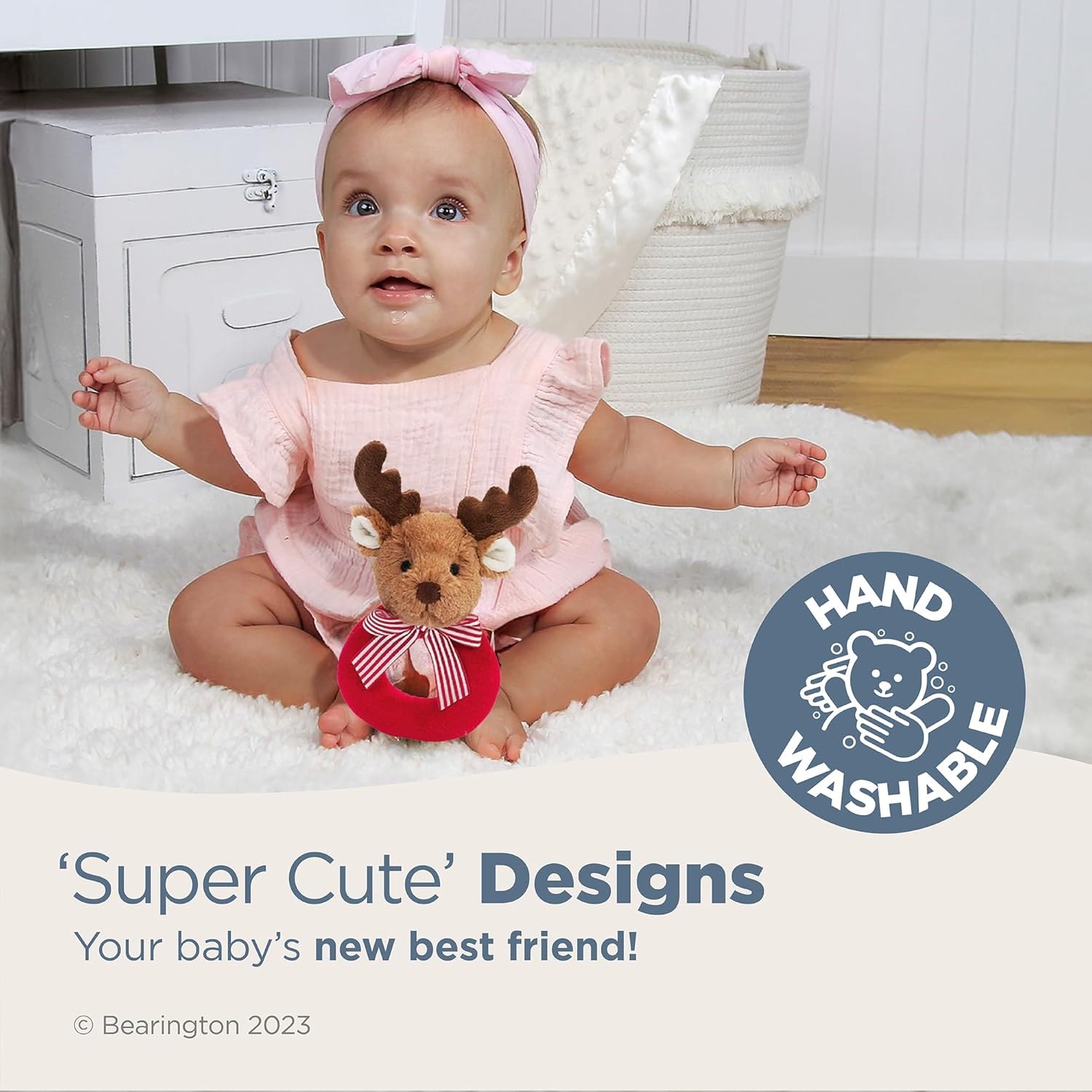 - SAFE AND RELIABLE: Crafted with utmost care, this soft rattle toy is made from high-quality materials, giving parents peace of mind. Compact and lightweight, the Bearington Baby Lil’ Reindeer rattle is designed for easy handling by tiny hands. It's a perfect travel companion, whether in the car, stroller, or crib, keeping your baby comforted and engaged wherever they go.