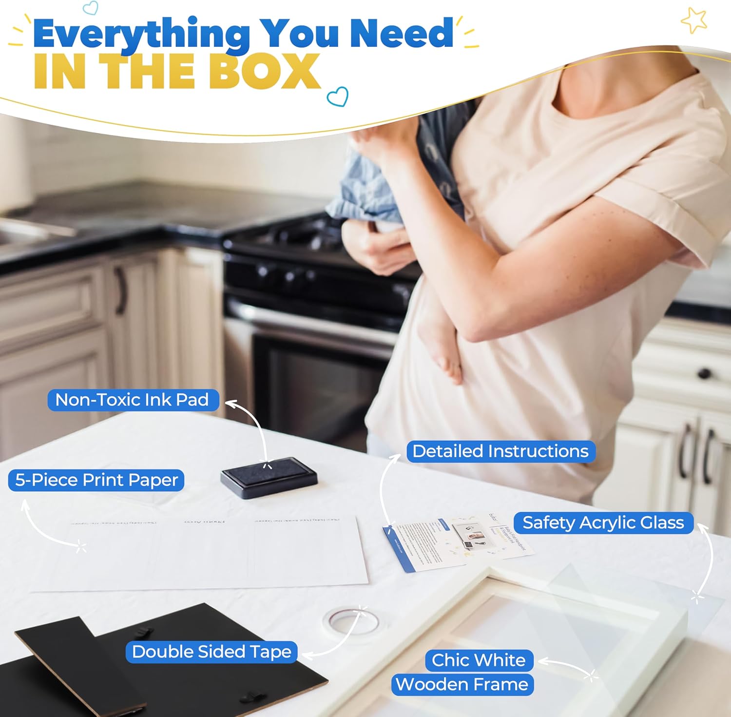 - Make Lasting Memories: A baby hand print & foot print kit makes priceless first memories for a new mom & dad. Gifts for new moms after birth are often discarded over time but with a newborn picture frame you can capture memories that will last a lifetime.