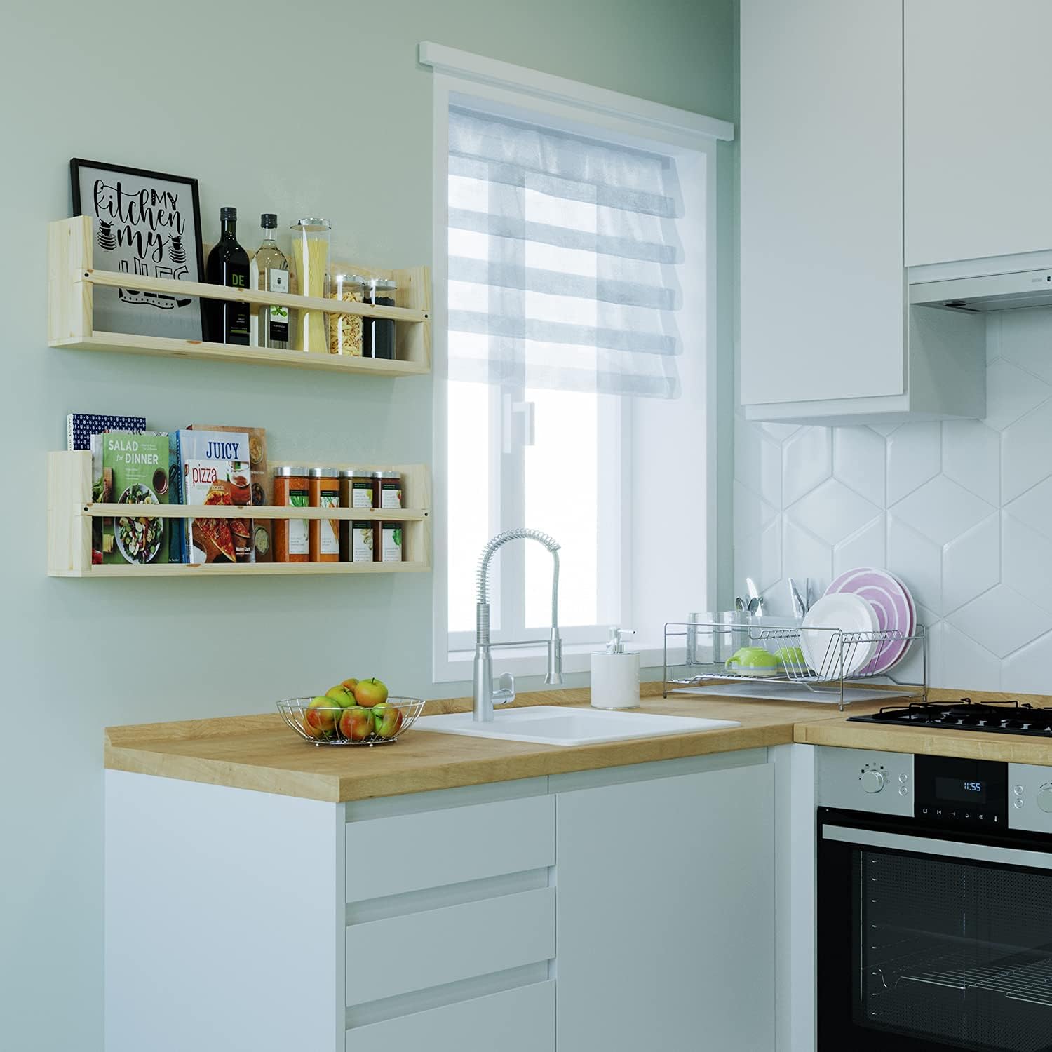 - Multiuse Shelf: Thanks to these storage shelves' wooden and simple design, you can use them not only in your kids room or nursery but also in different places. Mount them on your bathroom wall as makeup organizer or your kitchen to store spice jars and display recipe books.