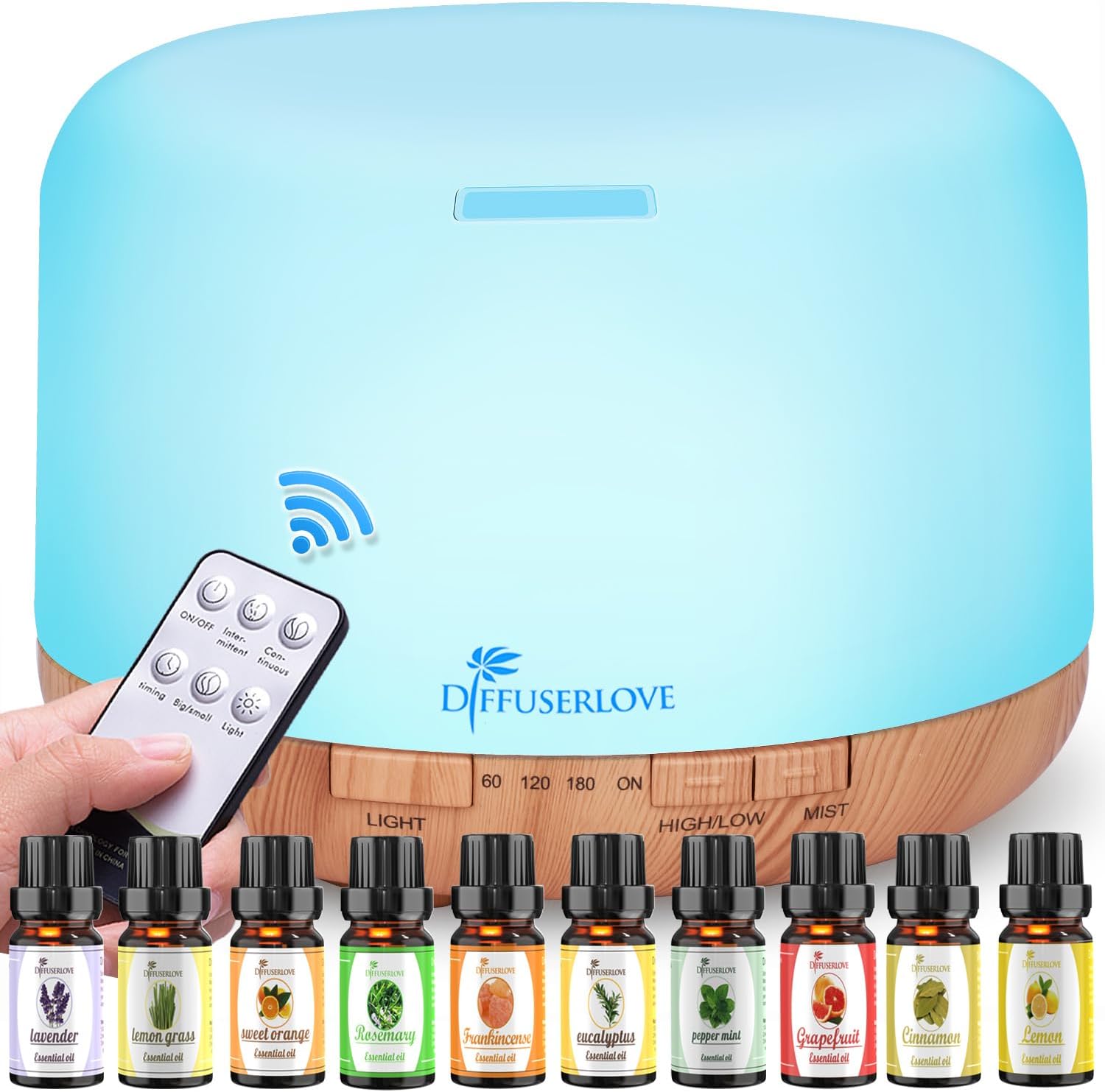 Diffuserlove Diffuser Essential Oil Diffusers 500ML Remote Control Aroma Diffuser Cool Mist Aromatherapy Diffuser with Mute Design, Timer and Auto Shut-Off for Office Living Room Yellow
