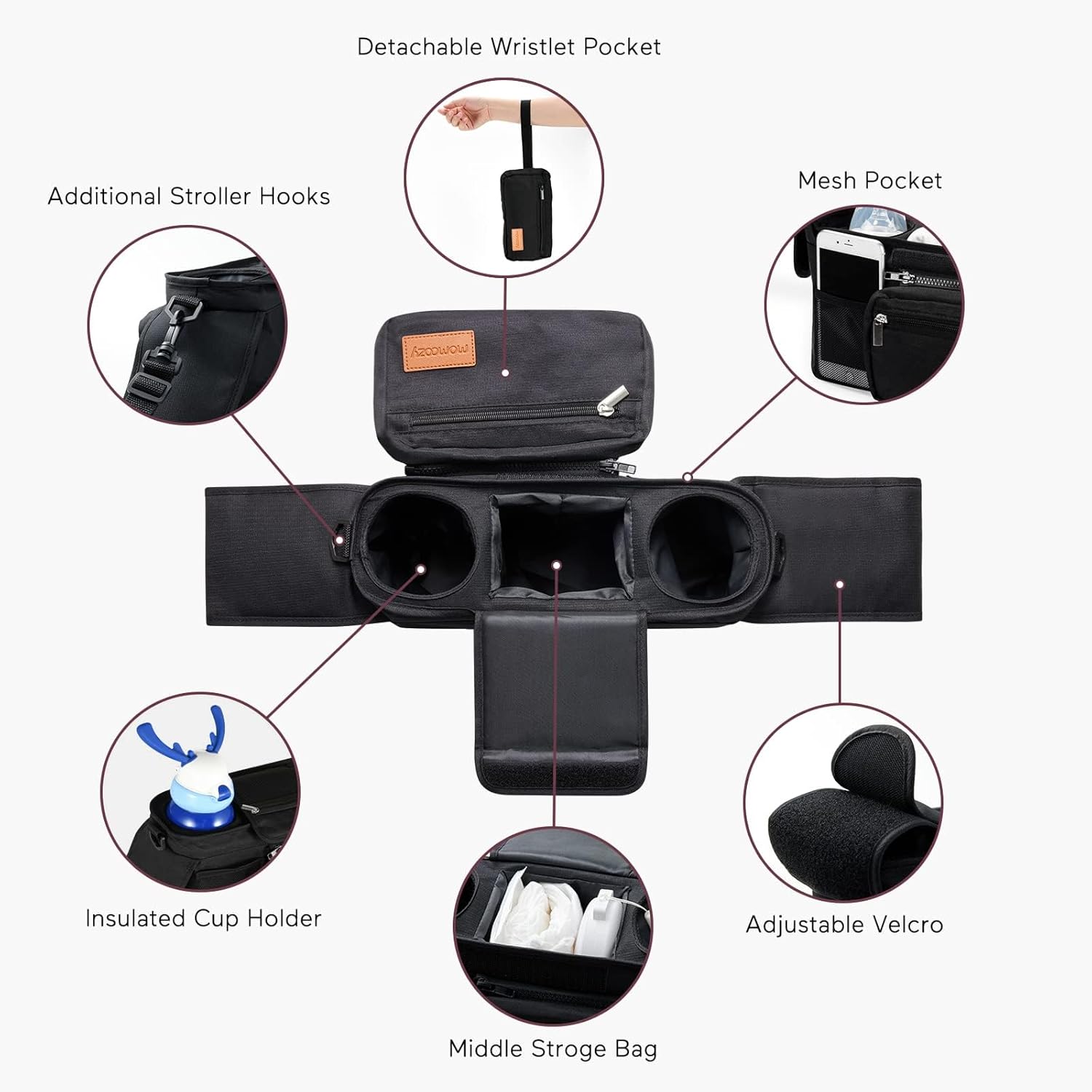 Momcozy Universal Stroller Organizer with Insulated Cup Holder Detachable Phone Bag & Shoulder Strap, Fits for Stroller like Uppababy, Baby Jogger, Britax, BOB, Umbrella and Pet Stroller