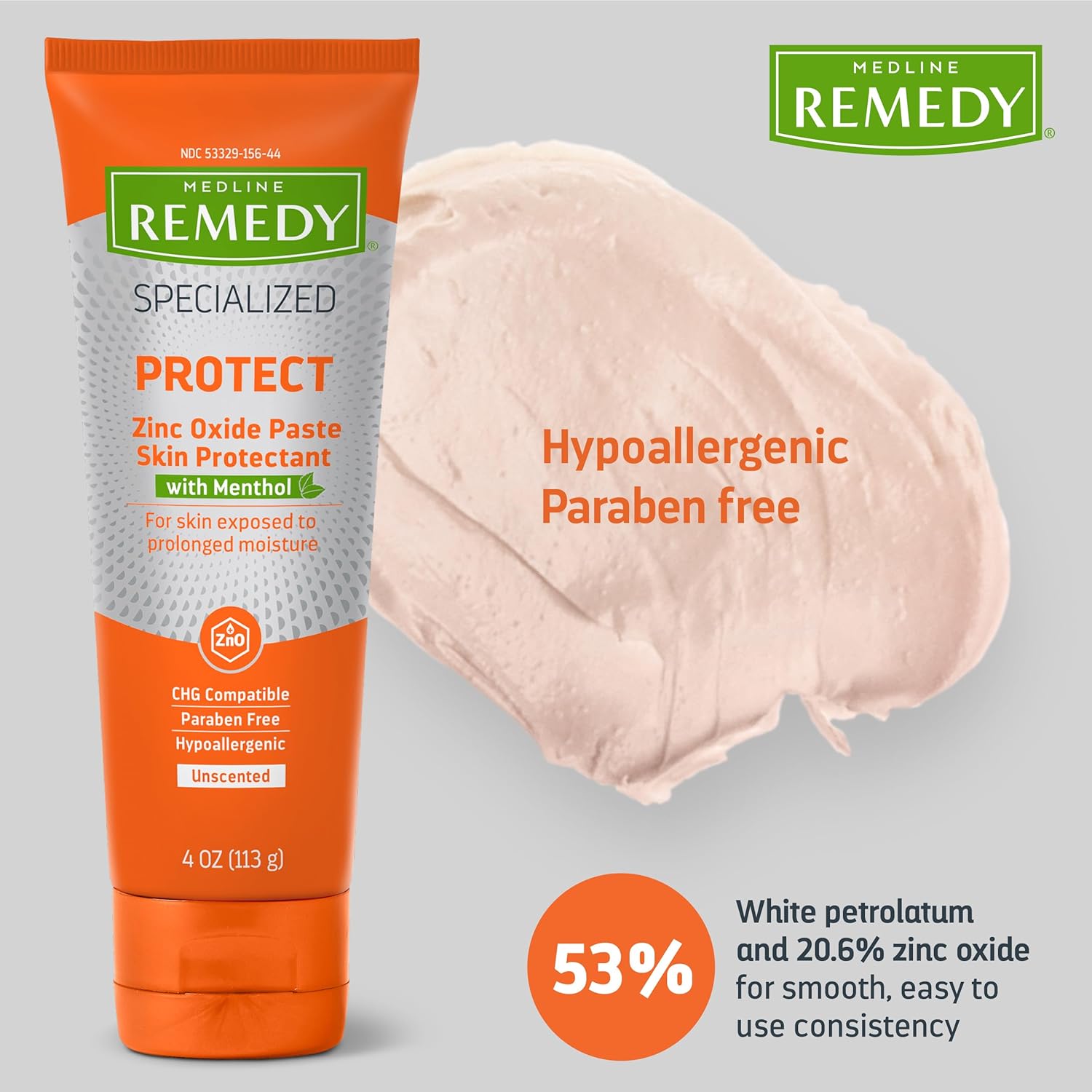 Medline Remedy Specialized Zinc Oxide Paste with Menthol (4 oz Tube), Unscented, Calamine, Incontinence Care, Diaper Rash, Wetness Protection, Hypoallergenic, Paraben Free, Adults, Soothing