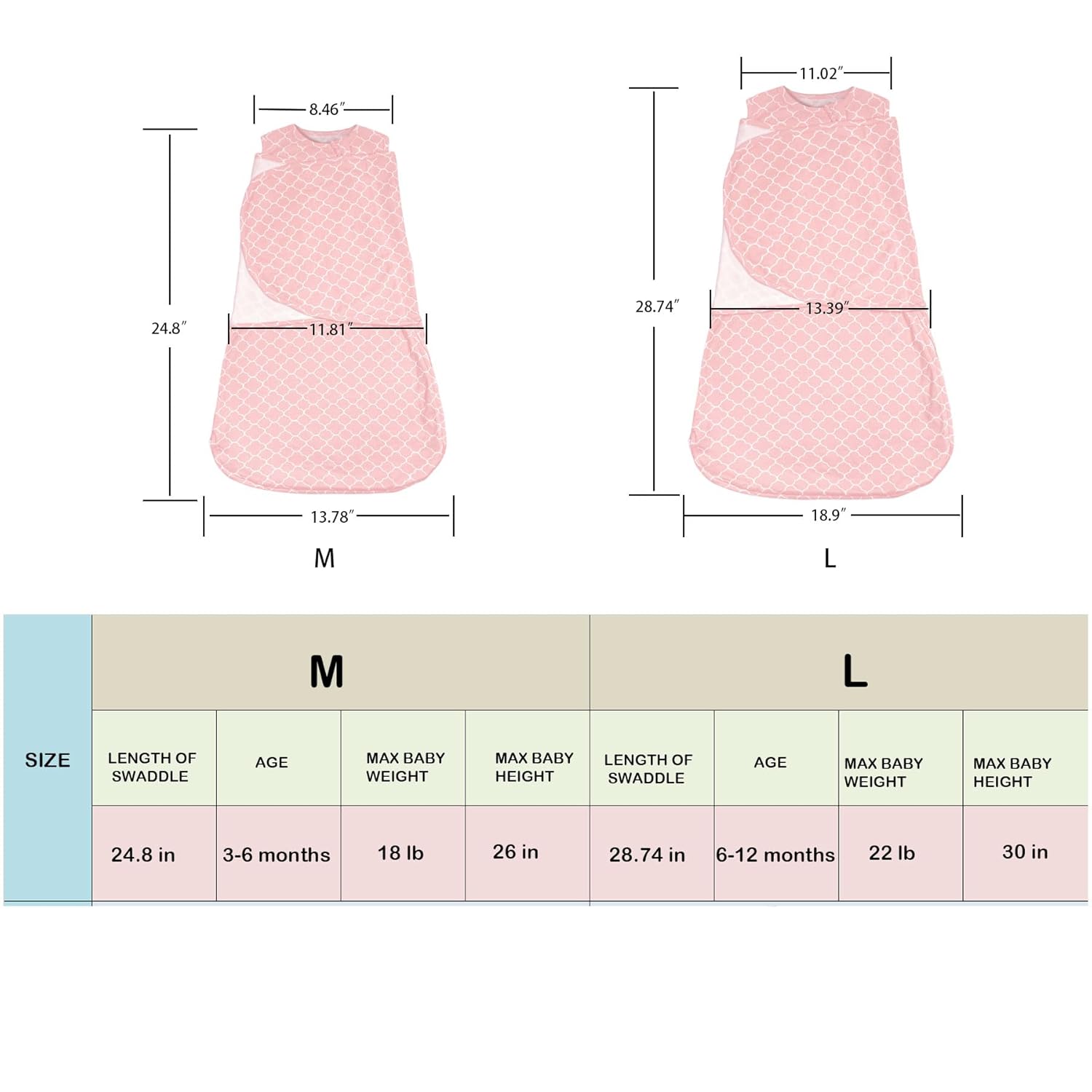- Available here in Medium size designed for babies weighing between 18 and 22 pounds who are generally 6-12 months old and 26-37 inches long; discontinue swaddling when the baby shows signs of rolling over or breaking out of the swaddle wrap.