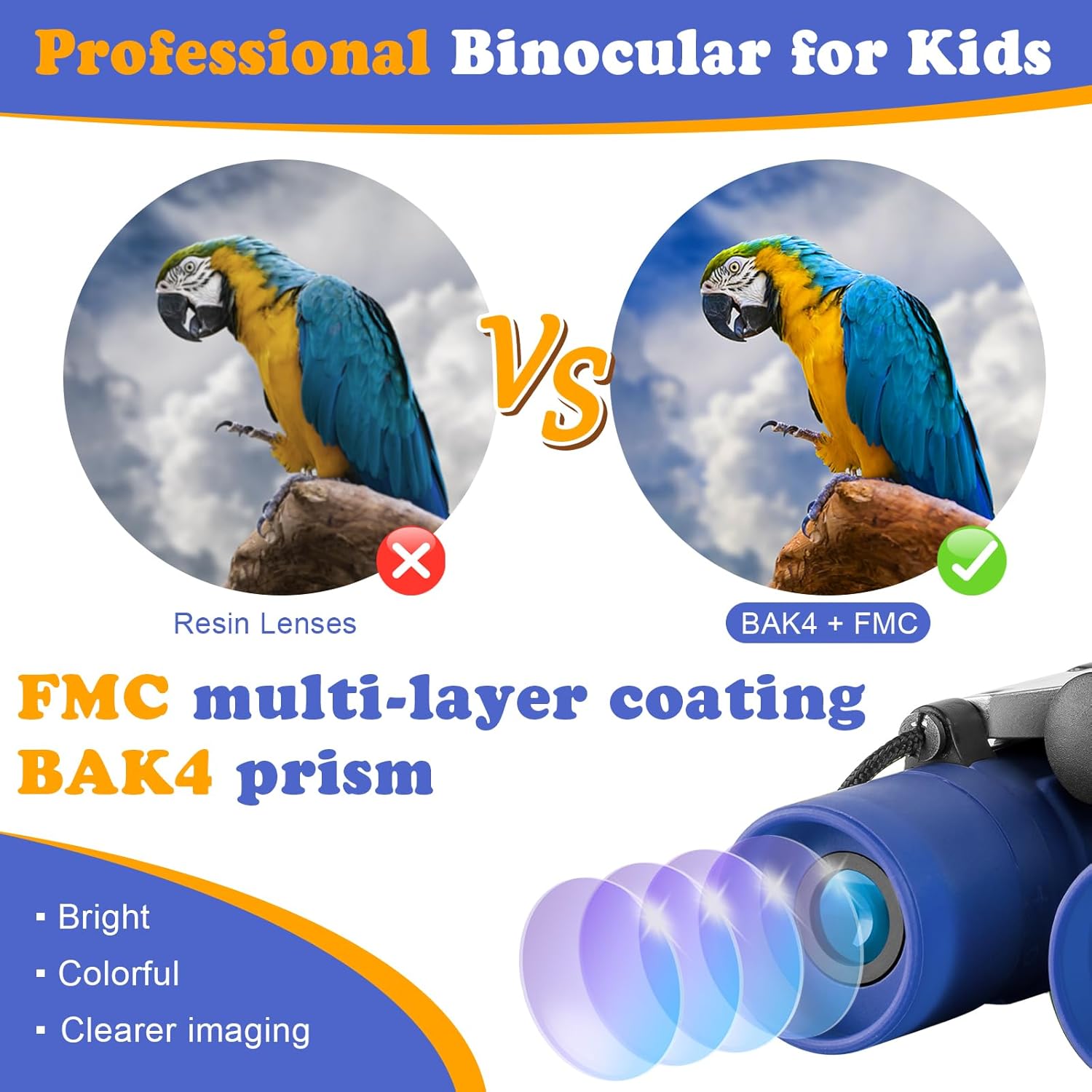 - ☆Crystal Clear View: Superb high-resolution maginifcation of 8X with the 7.2°viewing angle, your child can see the entire visual wide field for capturing objects easily. The BAK 4 FMC prism green multi-layer broadband coated can control optical reflection to create crisp and colorful images.