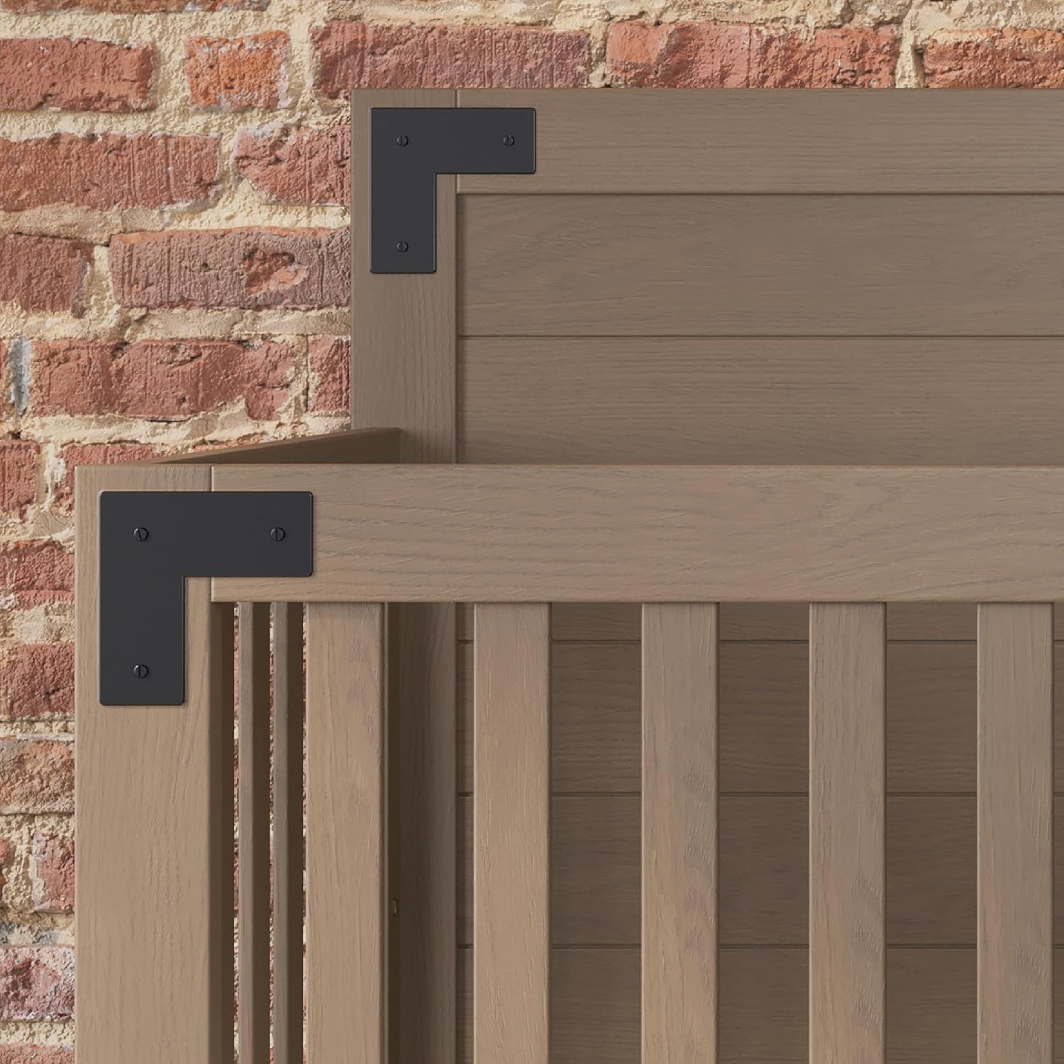 - Farmhouse Style Baby Crib: The rustic, farmhouse style of this crib allows it to stand out in any nursery with its shiplap style headboard and black metal corner accents