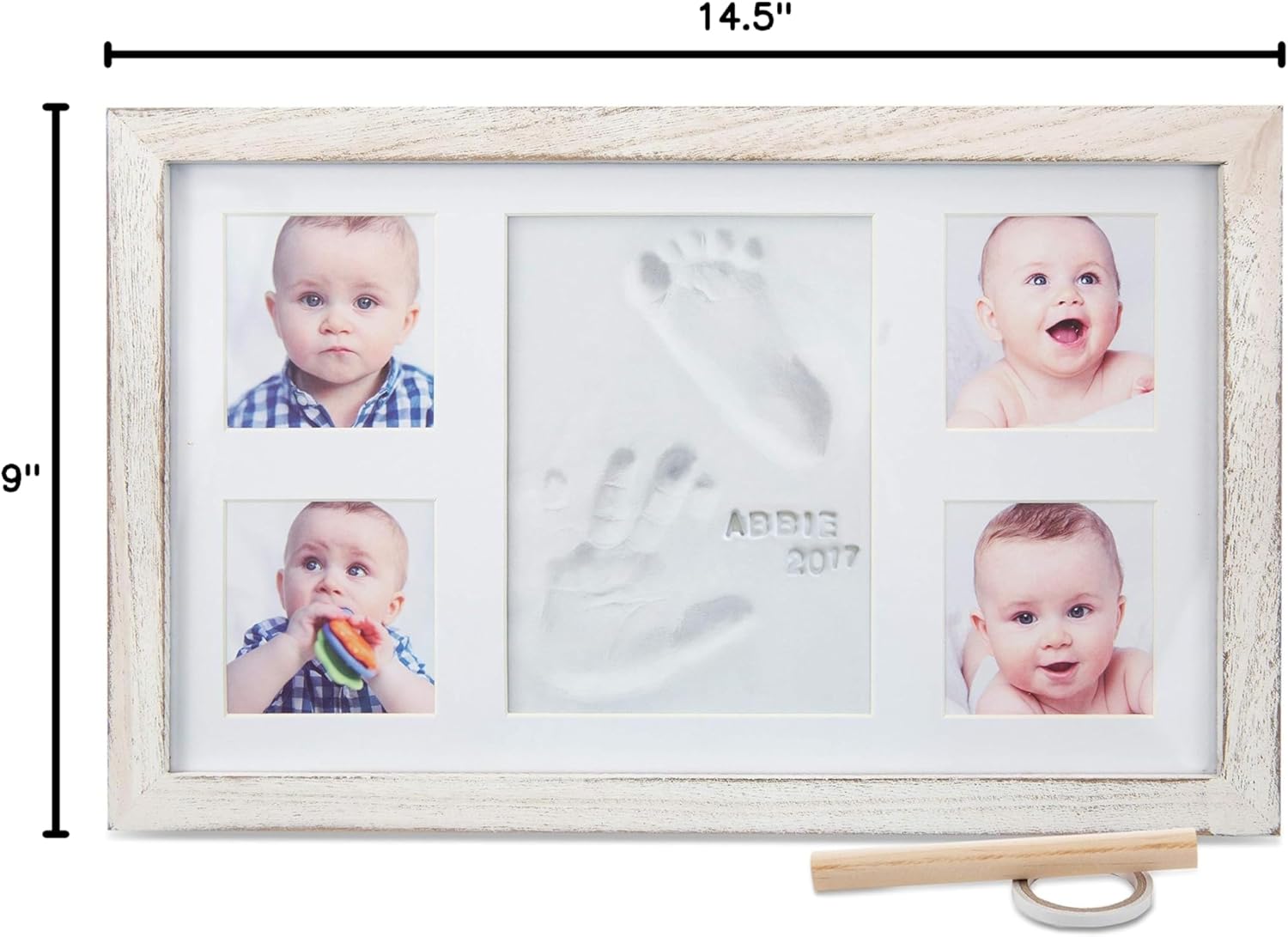 - 🖐🏼A GENTLE MOMENT OF CREATION: It won’t be long before they’re all grown up and on their way. So take a moment now, capture their little handprint, and always remember their tiny newborn fingers and toes. Simple to follow instructions will guide you step by step, and your precious creation will be assembled in under 10 minutes, ready for proud display. BONUS: comes with customizable name / date stamps, rolling pin, clay, and more - everything you need!
