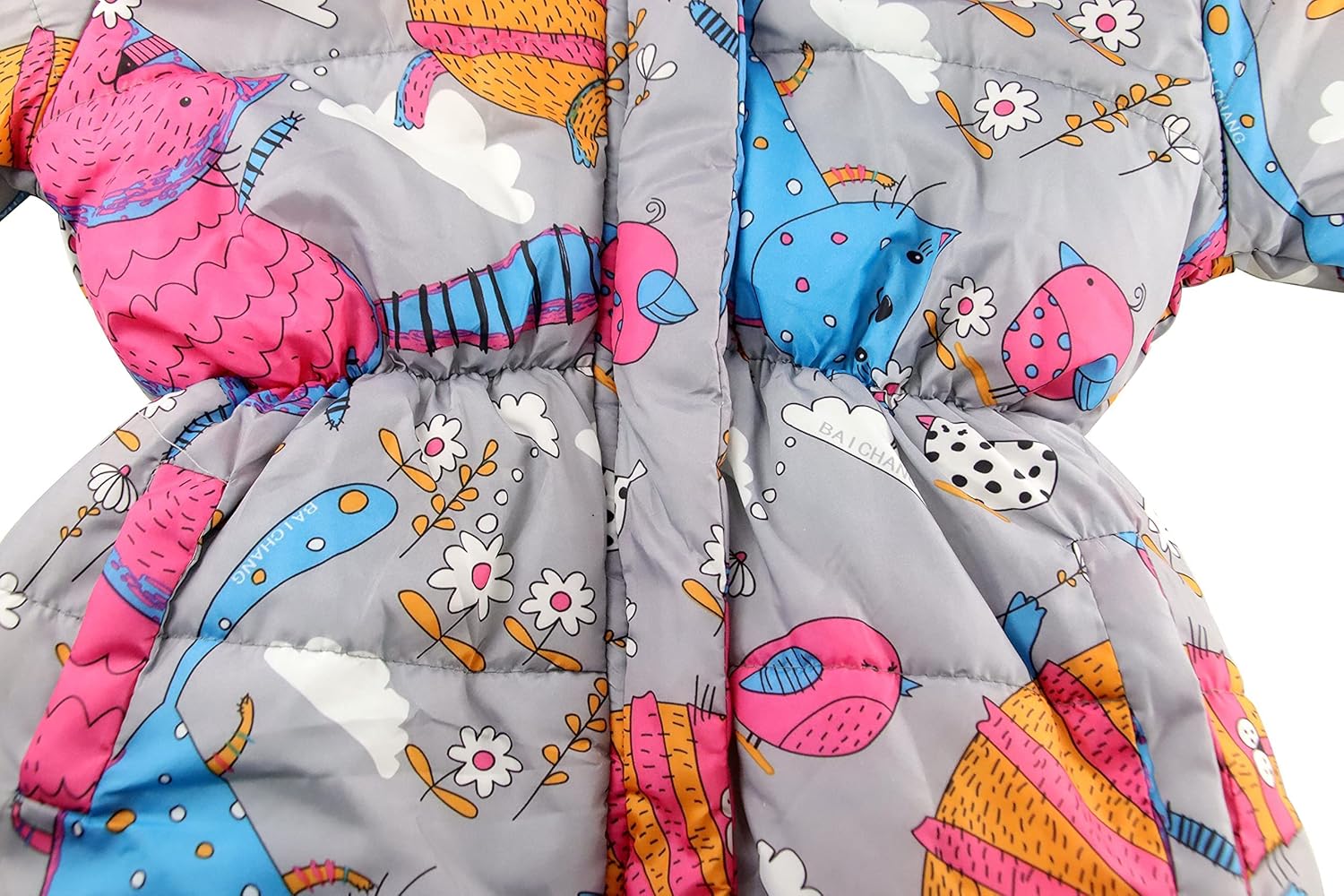 - Baby Girls Pattern Winter Clothes : fabric polyester fabric and down filled cotton,Lightweight Warm light material,Girls hooded down jacket with faux fur hood