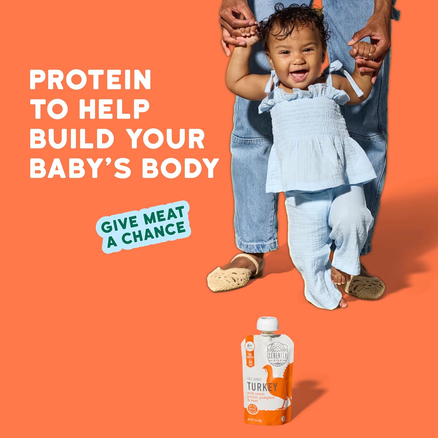 - SAVORY TURKEY DELIGHT: Dive into Serenity Kids' turkey baby food pouches made with turkey, pumpkin, and beets. These baby food purees are perfect for letting your little foodie explore new savory flavors beyond sugary infant food