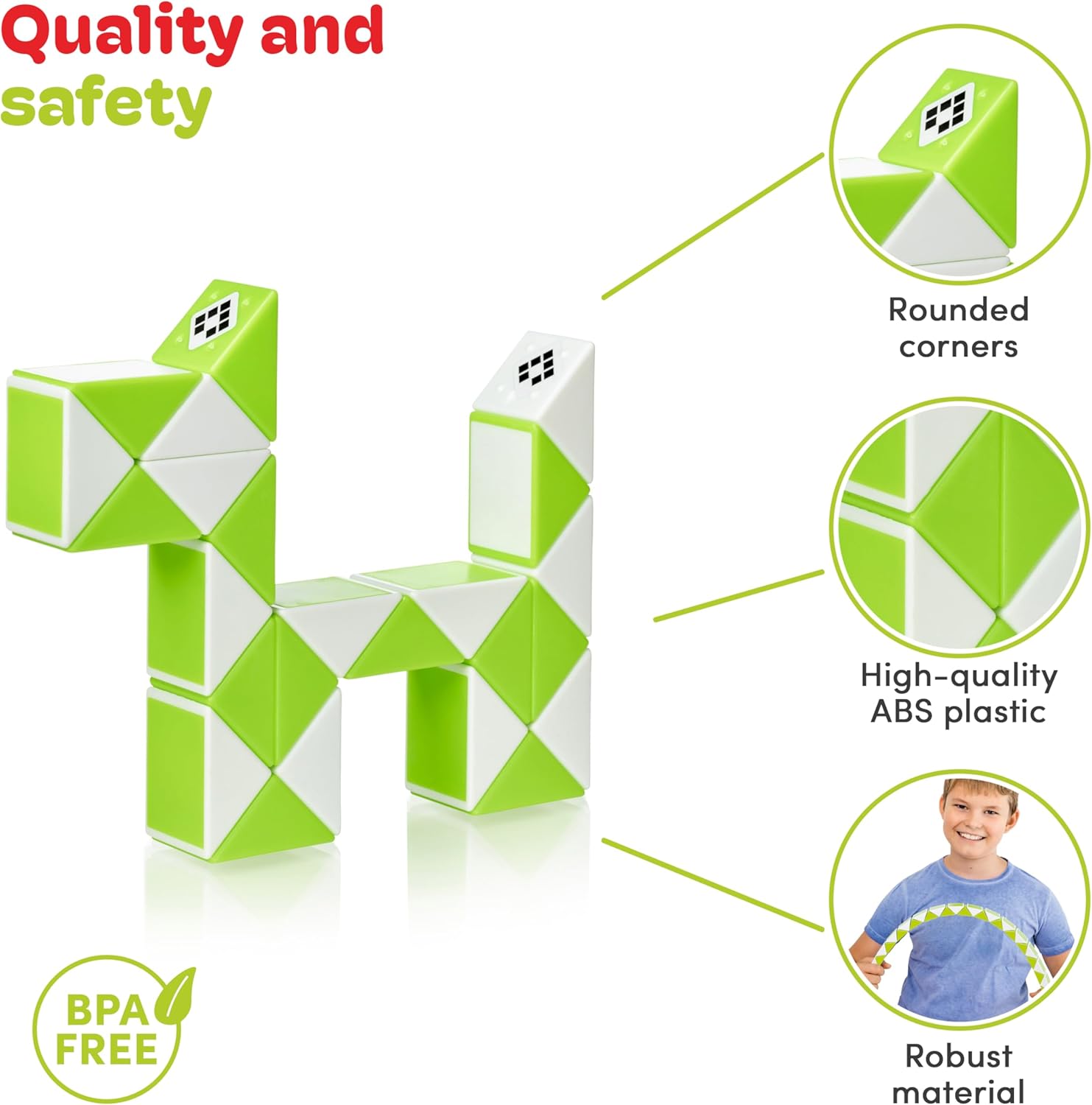 CUBIDI® Magic Snake Cube | Fidget Snake Toy for Kids | Travel Toys for Kids Ages 4-8 | Great Gift for Boys and Girls Birthday, Christmas, Stocking Stuffers - 24 Blocks | 0.9 inch x 0.7 inch | Green