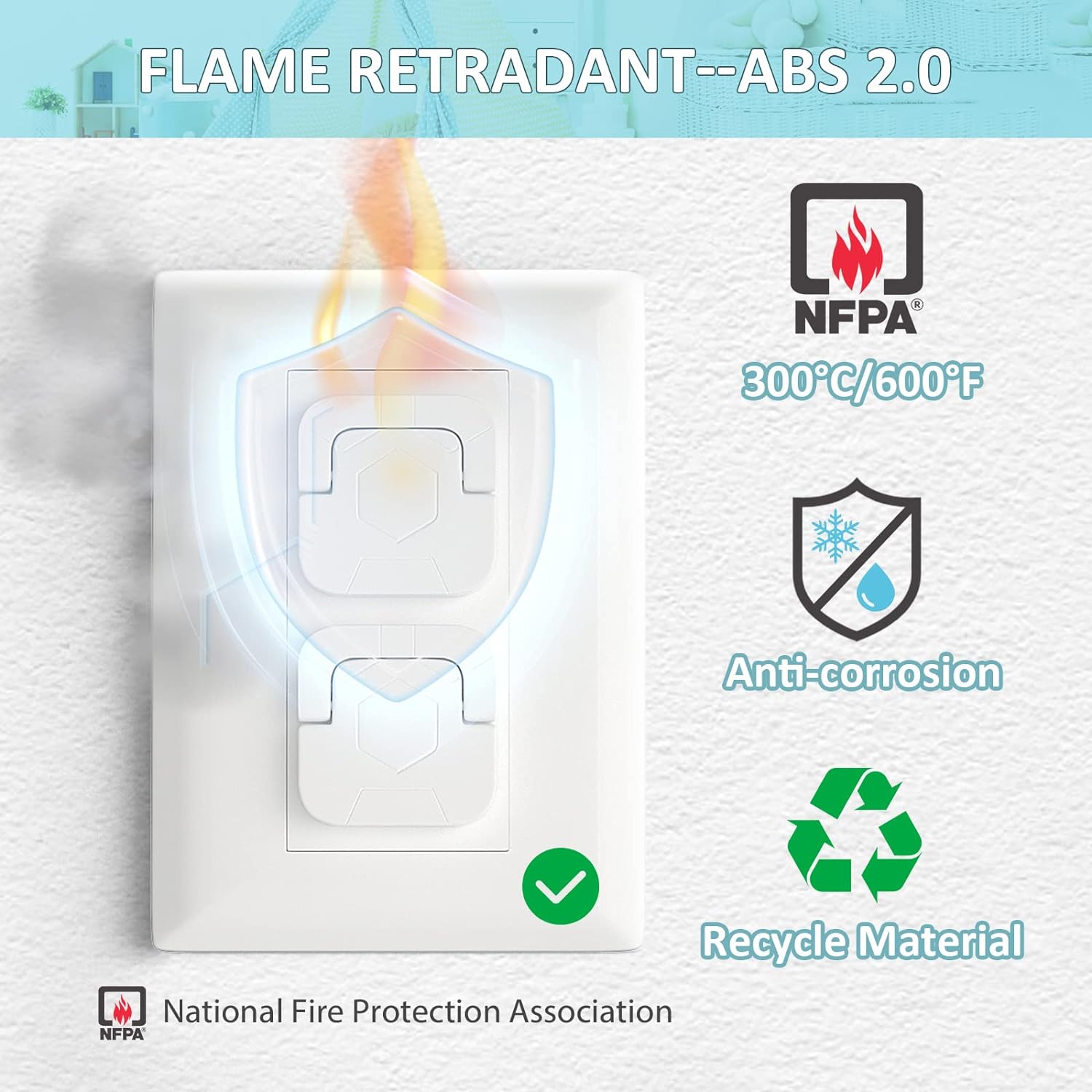 - The babyproofing outlet covers are made of ABS plastic which has excellent electric insulation properties. No like other cheap brand, our outlet plug covers have a smooth finished surface with no burrs so no matter how your babies try to play with it, it will never hurt your babies’ finger.