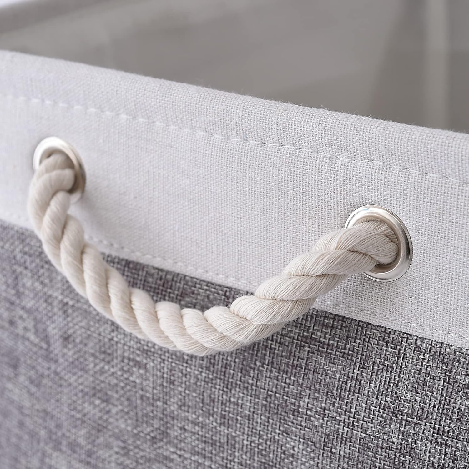 - Baskets for organizing with Handles: storage Baskets for closet and shelves, Metal eyelets and sturdy handle make it easy to carry or pull off and out of shelves. Great for using in bedroom, study room, rest room, kitchen, etc. Fold baskets flat for easy storage when not in use. Won't take up too much room.