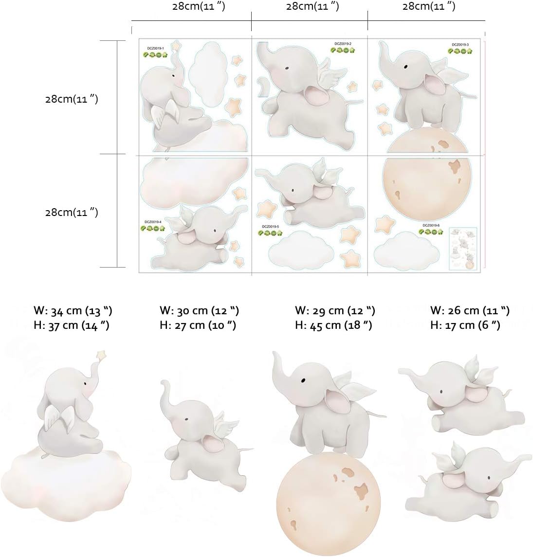 Runtoo Elephant Wall Decal Kids Animals Art Wall Stickers Baby Nursery Bedroom Space Wall Décor