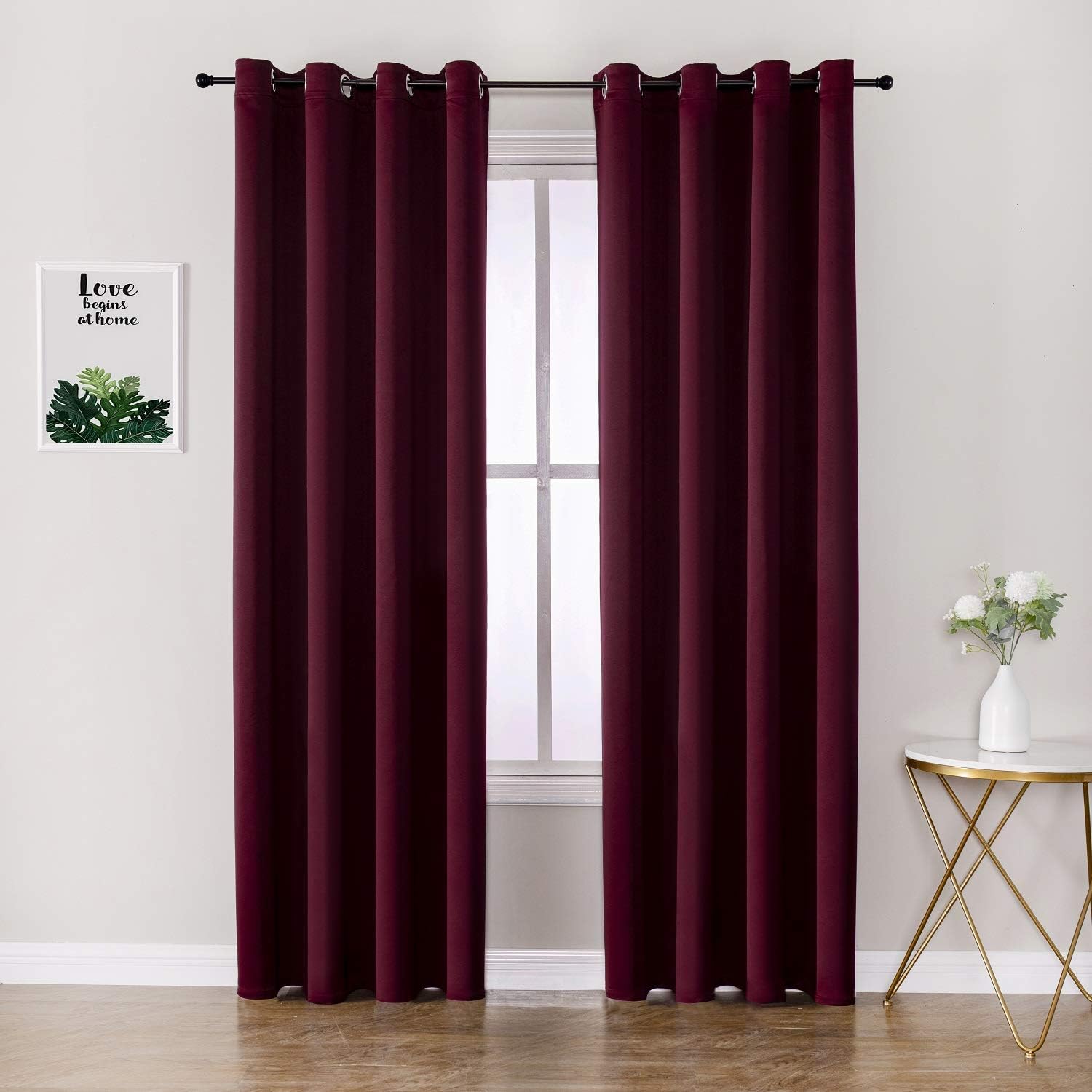 ChrisDowa Grommet Blackout Curtains for Bedroom and Living Room - 2 Panels Set Thermal Insulated Room Darkening Curtains (Burgundy Red, 52W x 84L)