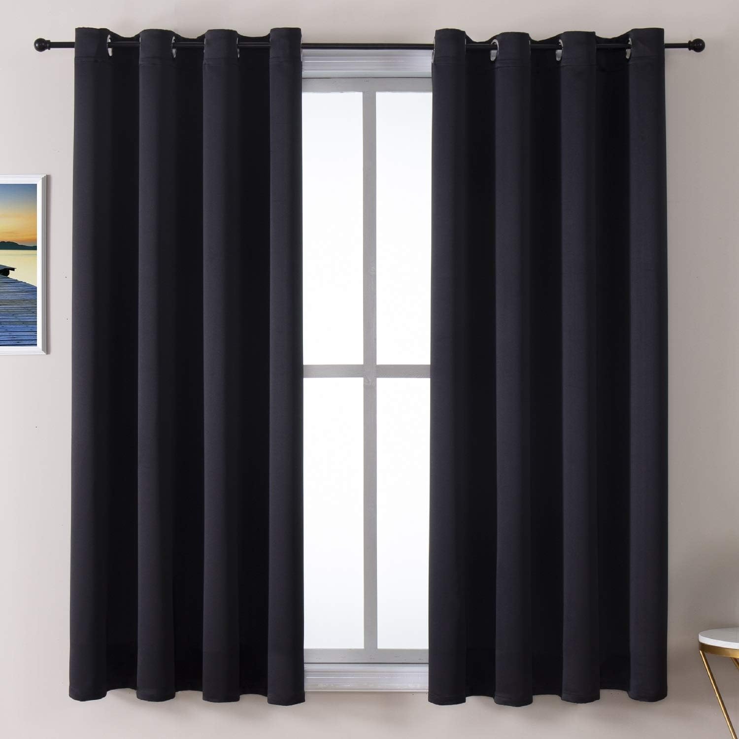 ChrisDowa Grommet Blackout Curtains for Bedroom and Living Room - 2 Panels Set Thermal Insulated Room Darkening Curtains (Black, 52 x 63 Inch)