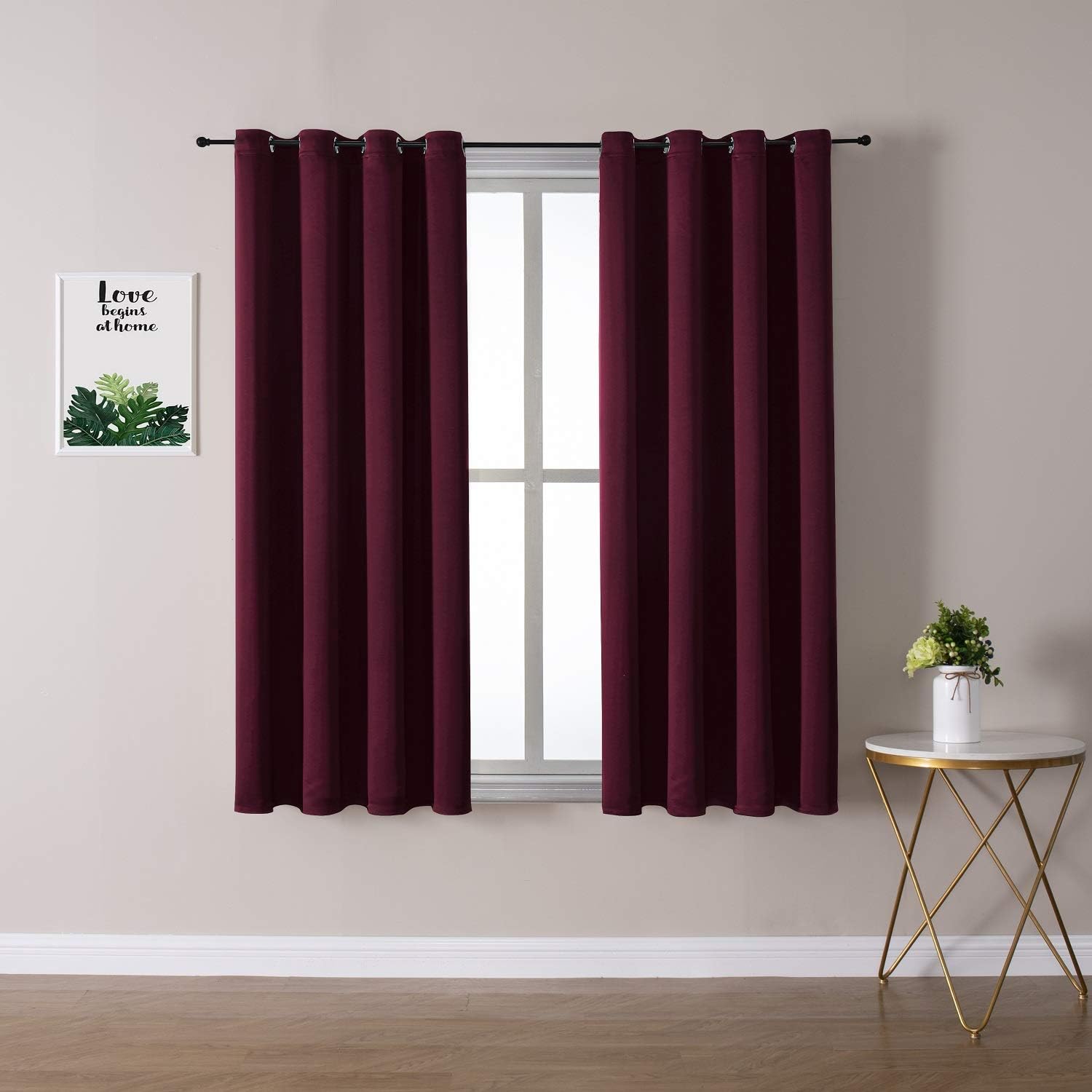 ChrisDowa Grommet Blackout Curtains for Bedroom and Living Room - 2 Panels Set Thermal Insulated Room Darkening Curtains (Burgundy Red, 52W x 63L)