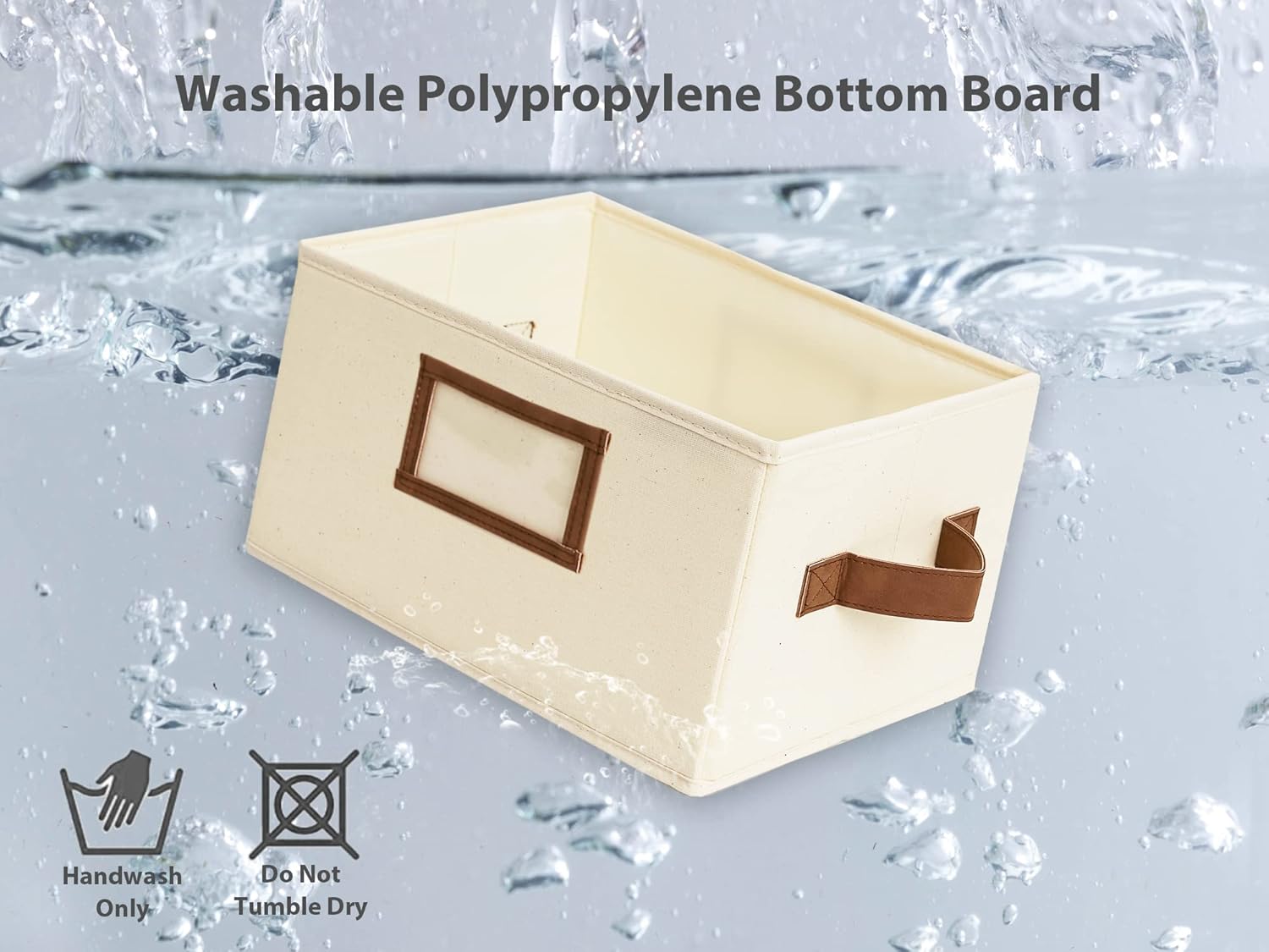 - Storage baskets with two sewn-in PU handles for easy carrying around, and the label holder for easy marking and identifying the items inside.