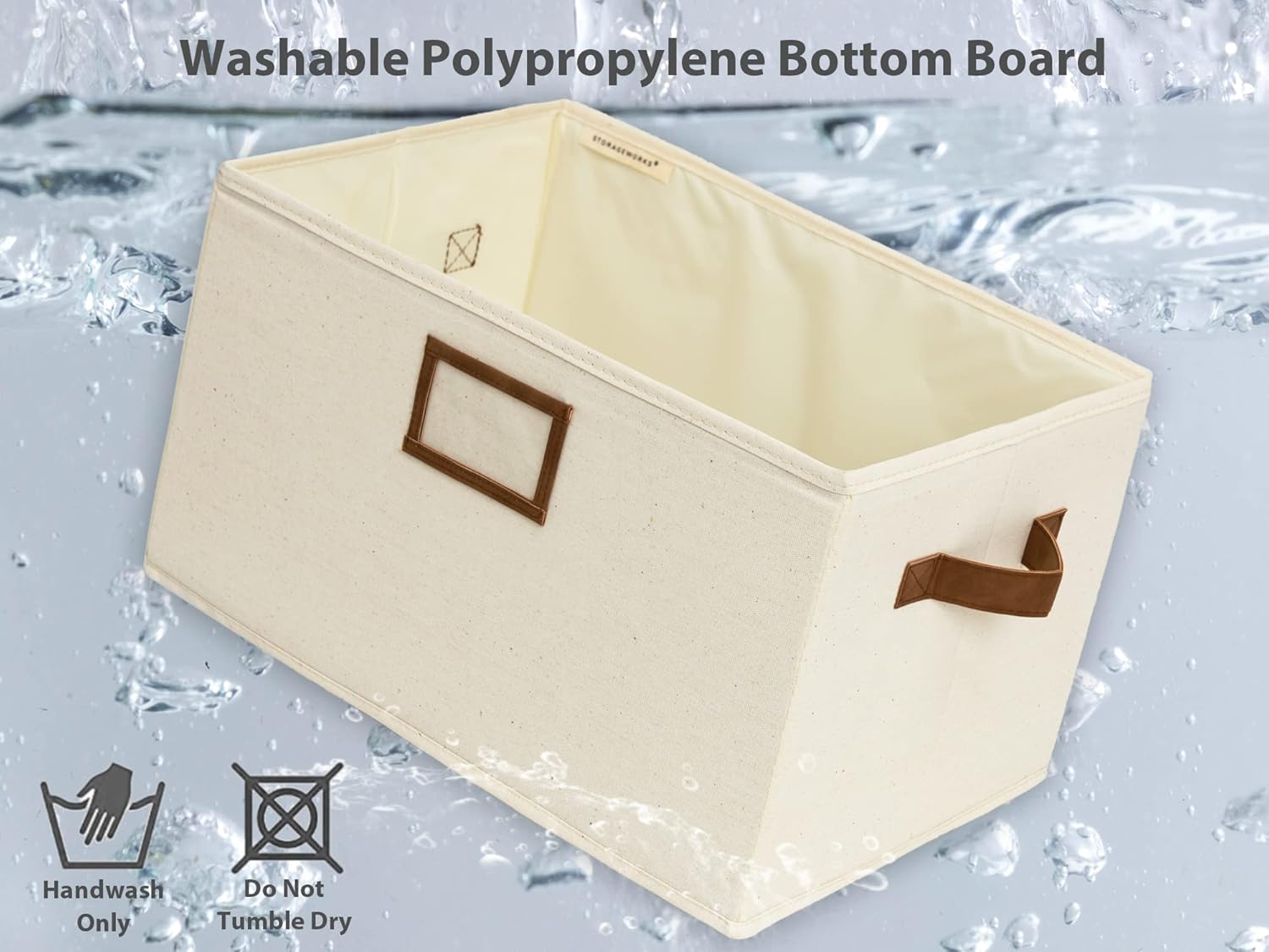 StorageWorks Storage Baskets for Shelves, Foldable Fabric Closet Storage Bins with PU Handles, Fabric Storage Bins Clothes Organizer, Ivory White, 3-Pack, Extra Large