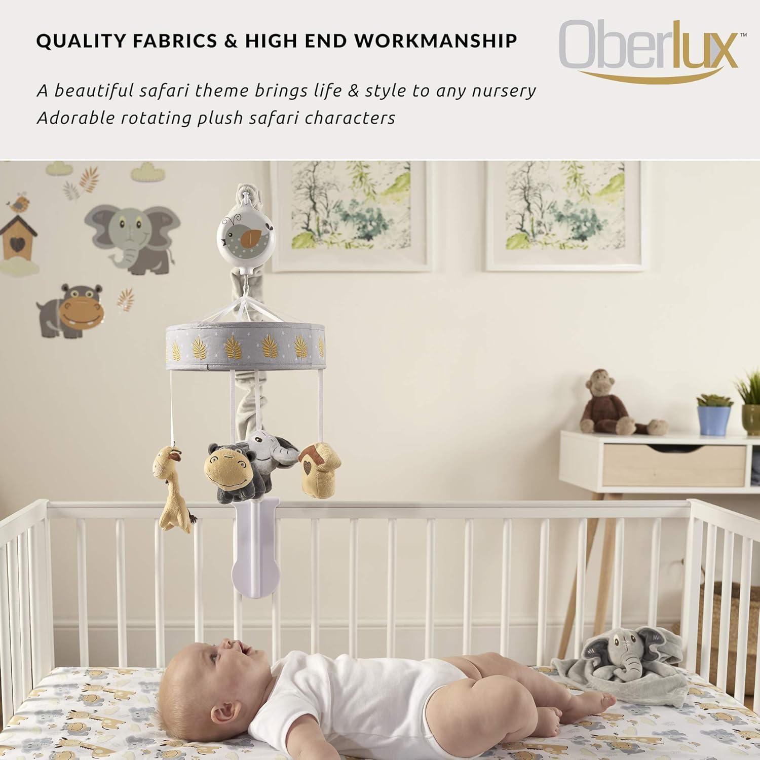 Musical Baby Crib Mobile - Jungle Animal Safari Theme Baby Mobile for Crib, Baby Soother, Baby Toys, Crib Toys Animals, Gray, Tan,