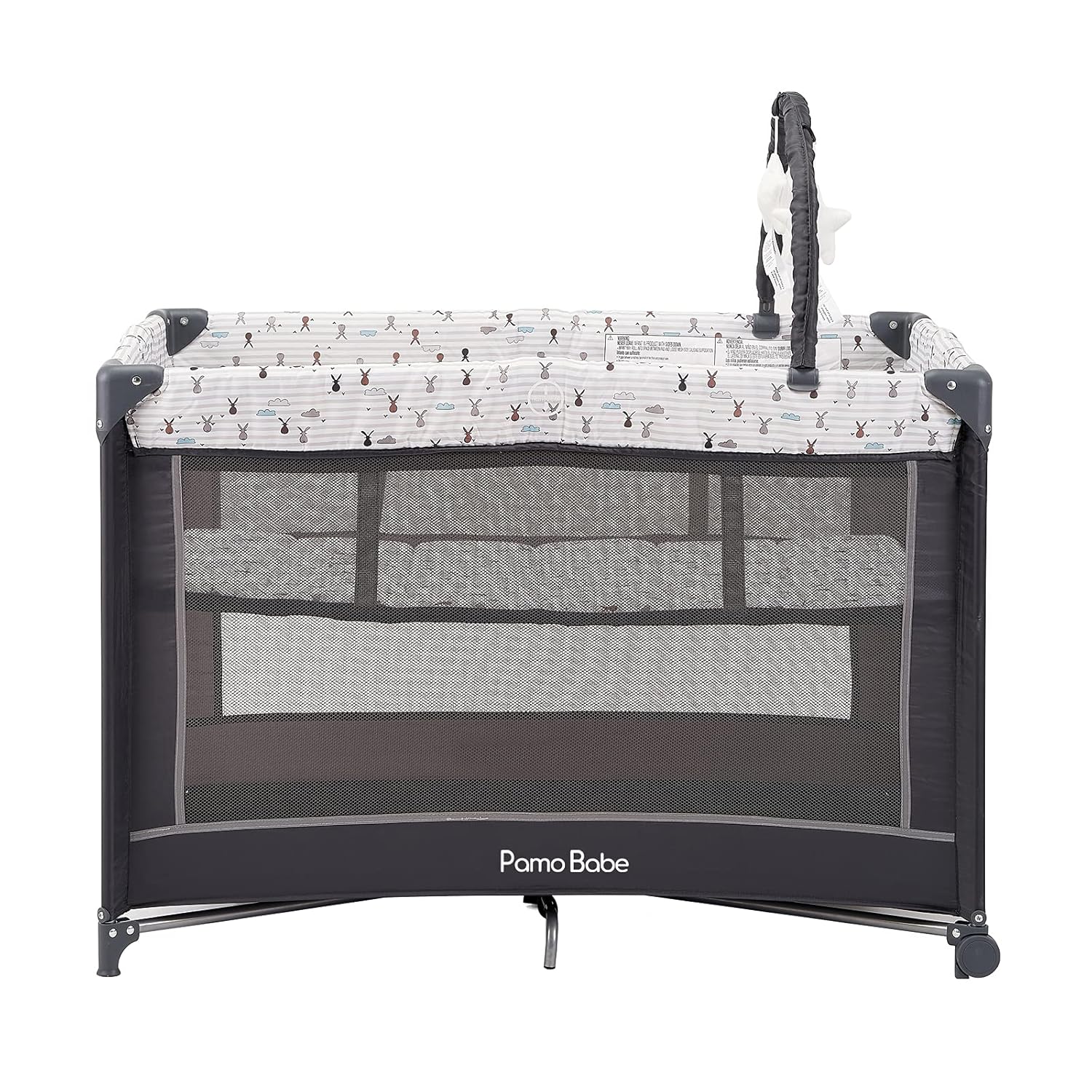 Pamo Babe Portable Playard,Sturdy Play Yard with Padded Mat and Toy bar with Soft Toys