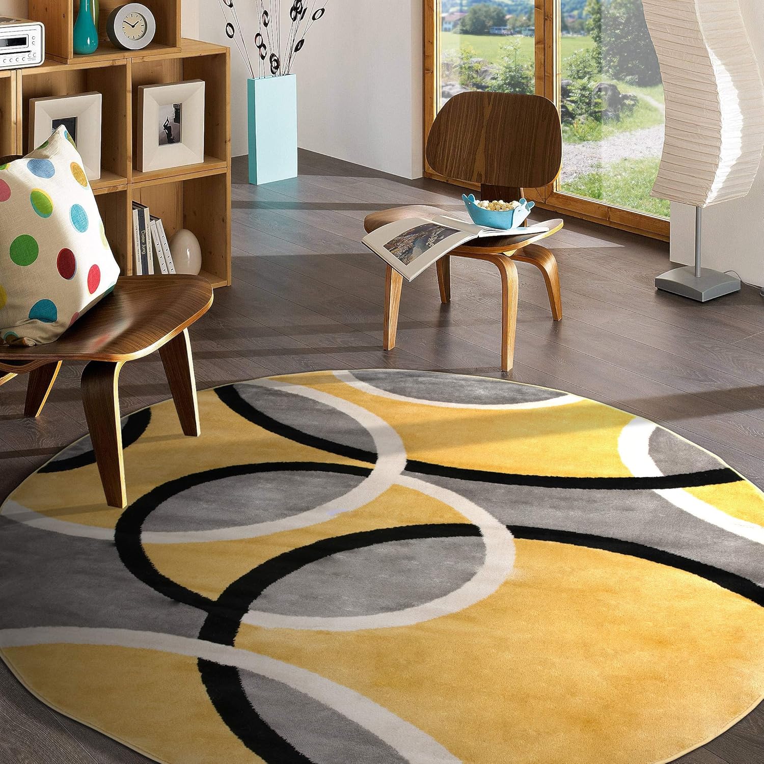 Rugshop Contemporary Abstract Circles Easy Maintenance for Home Office,Living Room,Bedroom,Kitchen Soft Round Rug 6' 6" (6' 6" Diameter) Yellow