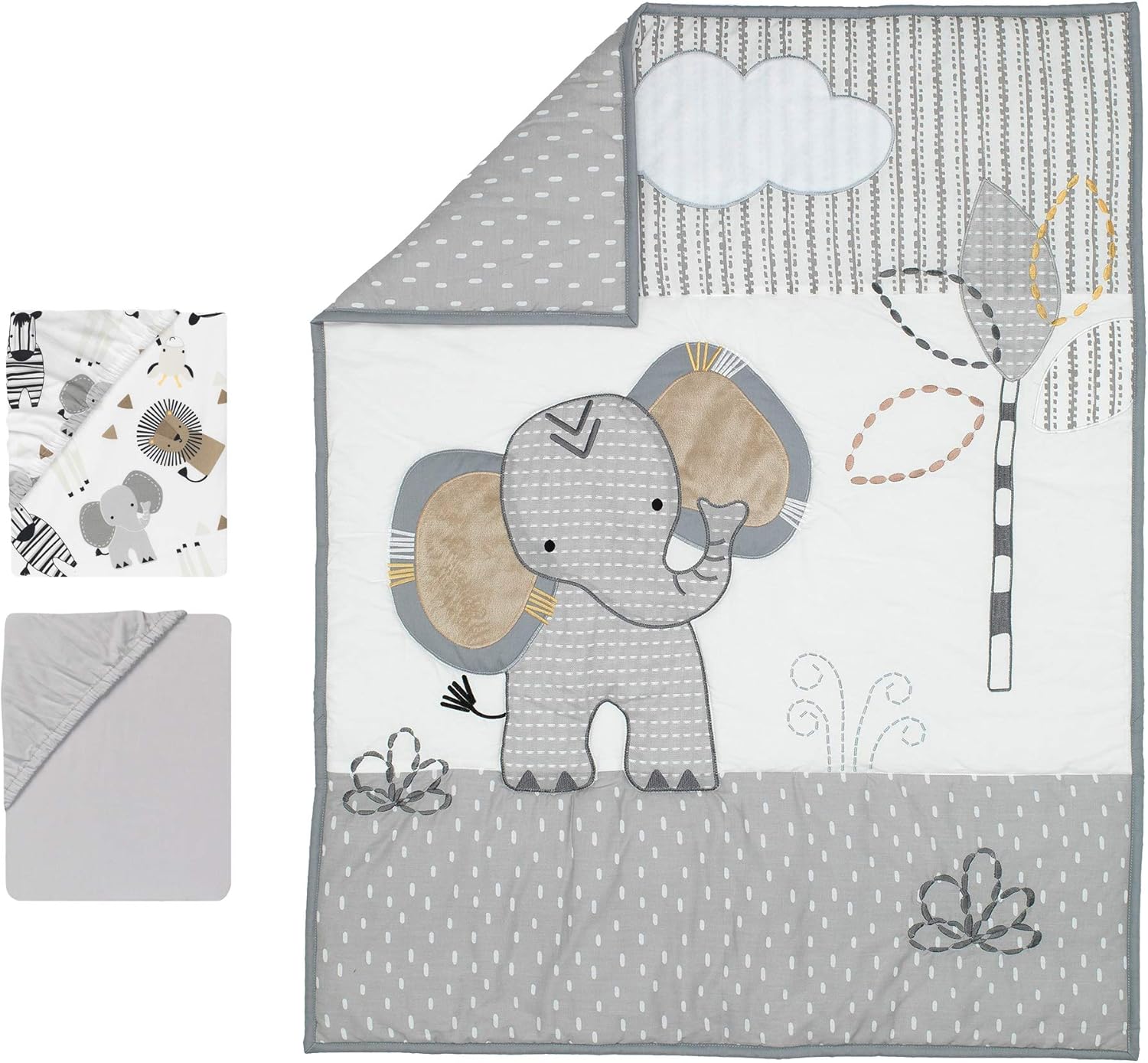 Lambs & Ivy Jungle Safari Elephant 3-Piece Mini Crib Bedding Set - Gray/White
