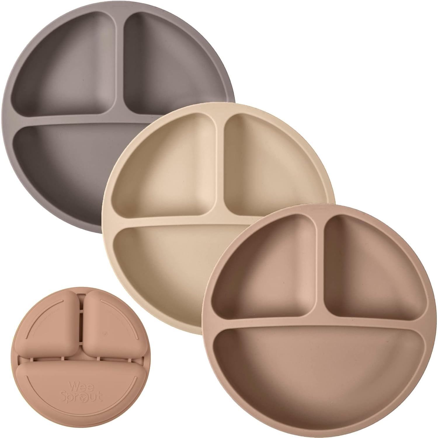 WeeSprout Silicone Plates for Babies & Toddlers (3 Pack) 100% Food-Grade Dishes for Self Feeding, Divided Design & Raised Edges for Picky Eaters, Dishwasher & Microwave Safe Weaning Supplies