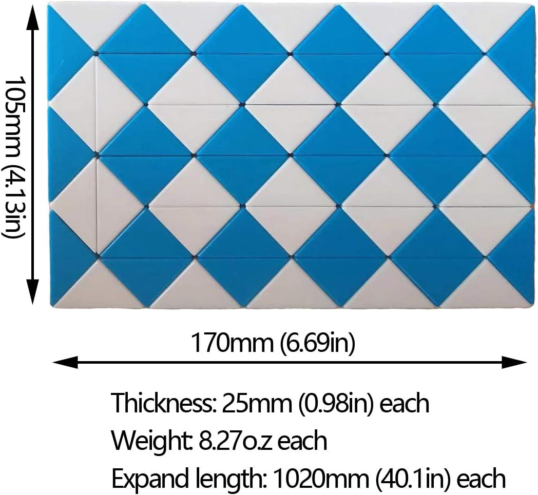 2 Pack Fidget Magic Snake Cube Puzzles Twist Ruler Speed Cubes Brain Teaser Game Toys for Kids Random Color (60 Block)