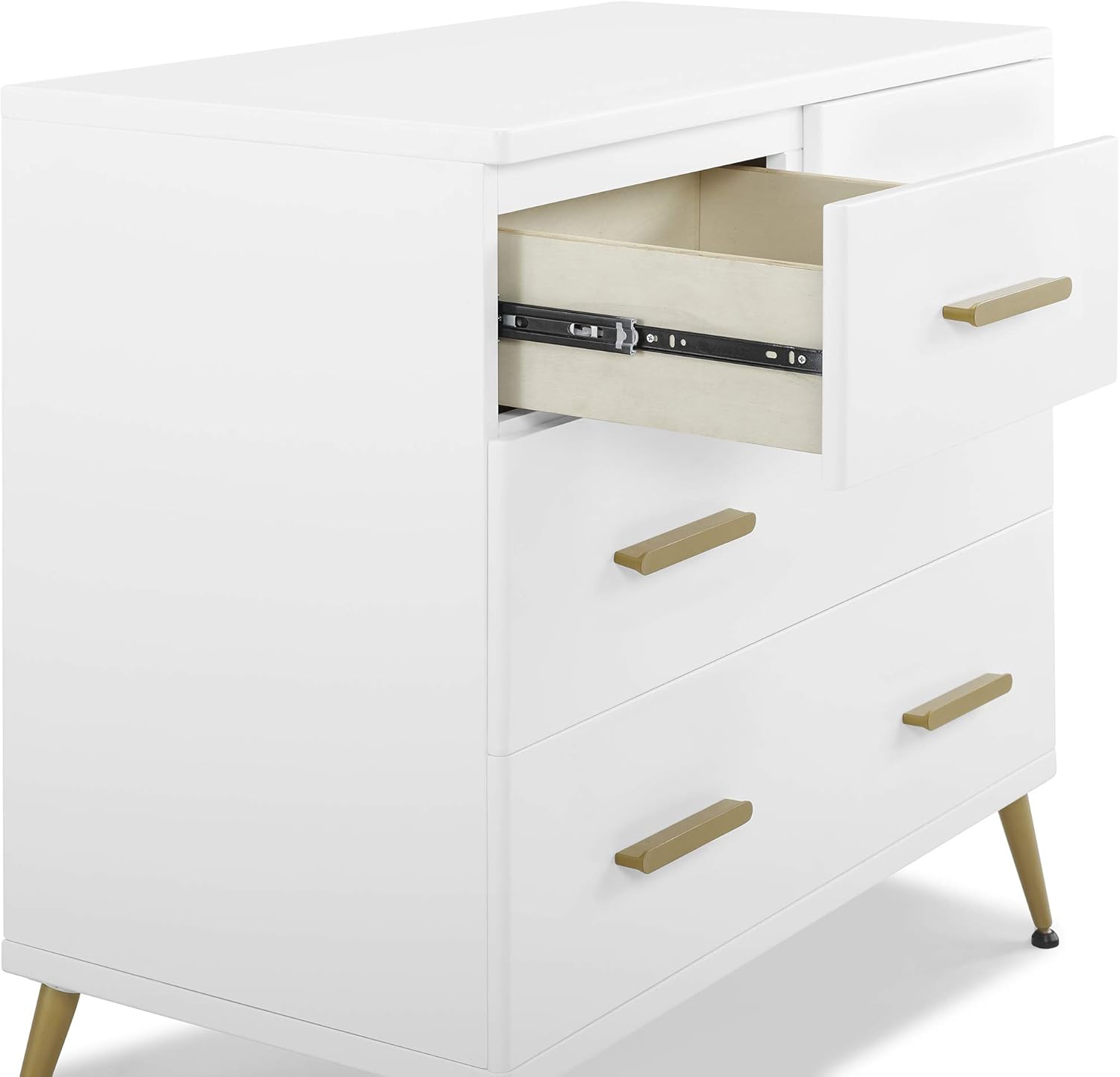 - Dresser Features: Crafted of sturdy, sustainable materials like New Zealand pine to give it plenty of longevity. For your child’s safety, this dresser is outfitted with an interlocking drawer system that limits the number of drawers that can be opened at one time. For additional security, we strongly recommend that all dressers in your home be anchored; dresser includes a wall anchor.