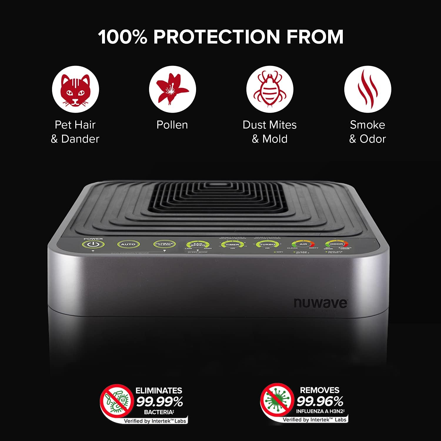 Nuwave Smart Air Purifier for Home Large Room up to 2,934 Sq. Ft., Auto Function Monitors Air Quality & Adjusts 6 Fan Speeds 5-Stage Filtration System Includes 8 Additional HEPA & Carbon Combo Filters