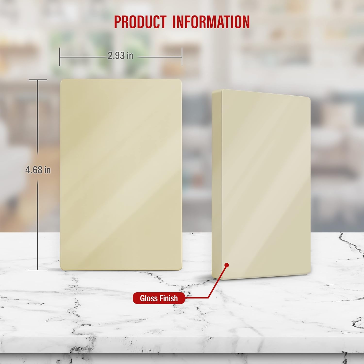 - Easy replacement of any wall plate of the same configuration; standard size dimensions: 4.68" height x 2.93 length