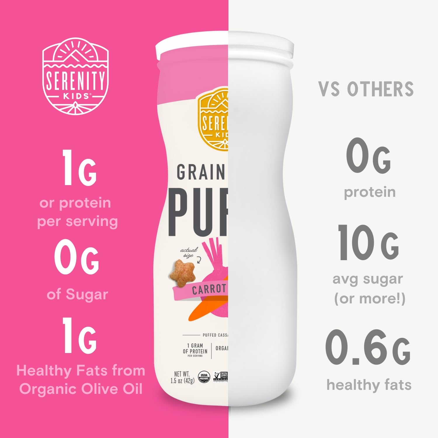 Serenity Kids 6+ Month Grain-Free Baby Veggie Puffs - No Added Sugar - Gluten-, Rice-, Dairy- & Soy-Free - Organic Cassava, Carrot & Beet - Portable Toddler Snacks - 1.5 Oz, 6 Pack
