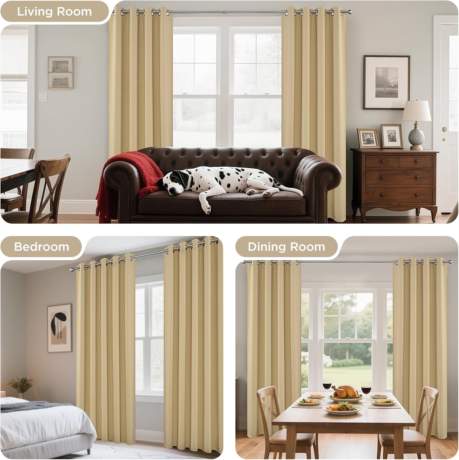 - Superior Blackout & Energy Savings: Black out curtains feature triple-weave technology for professional-grade light blocking. Dark colors curtains block 85%-99% of sunlight; light colors curtains block 65%-80%. Creates ideal darkness for sleep or naps. Thermal insulation helps regulate room temperature, reducing energy costs year-round.