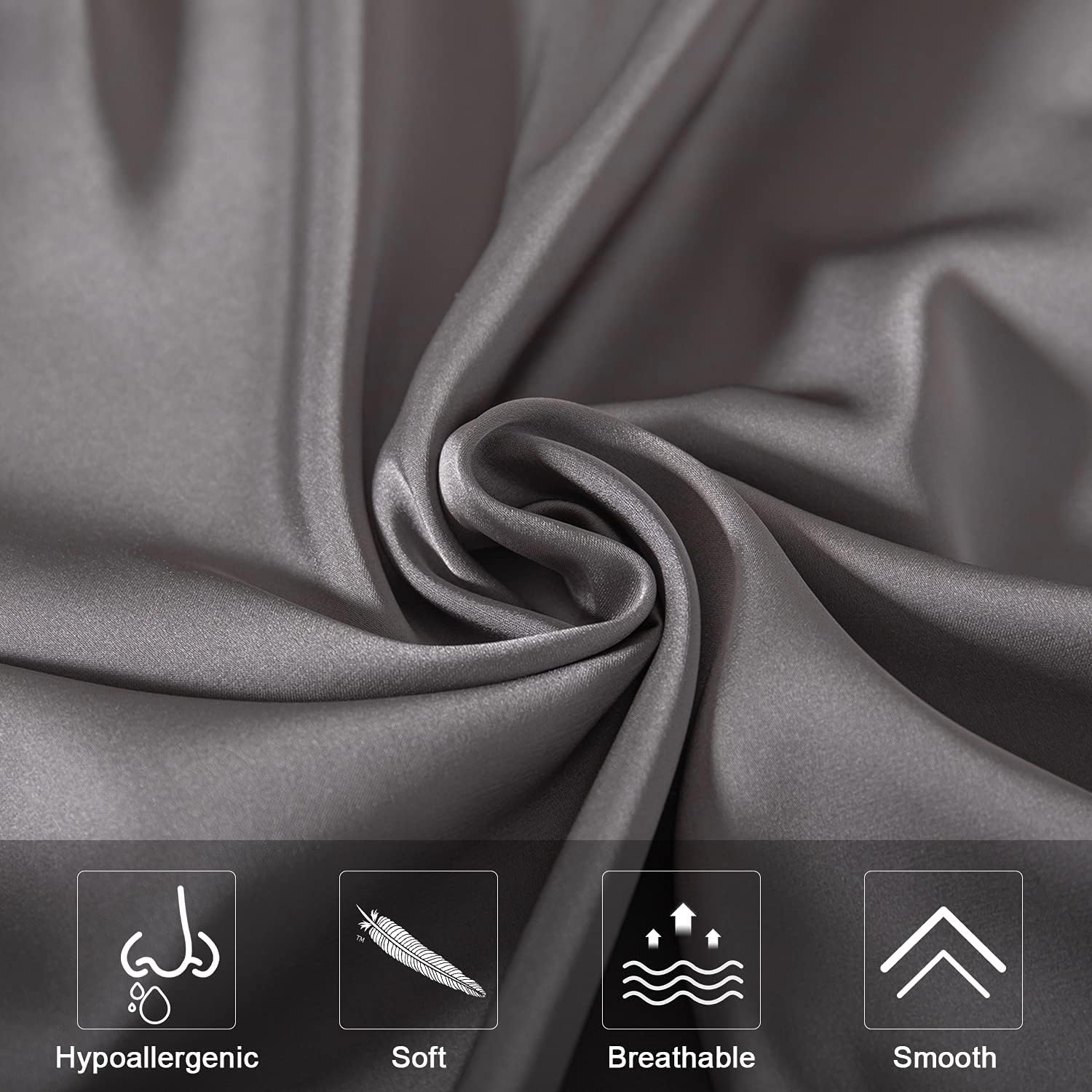 Mulberry Silk Pillowcase for Hair and Skin,King Size Cooling Silk Pillow Case with Hidden Zipper,Allergen Proof Dual Sides Soft Breathable Smooth Silk Pillow Cover for Women(King,Dark Gray)