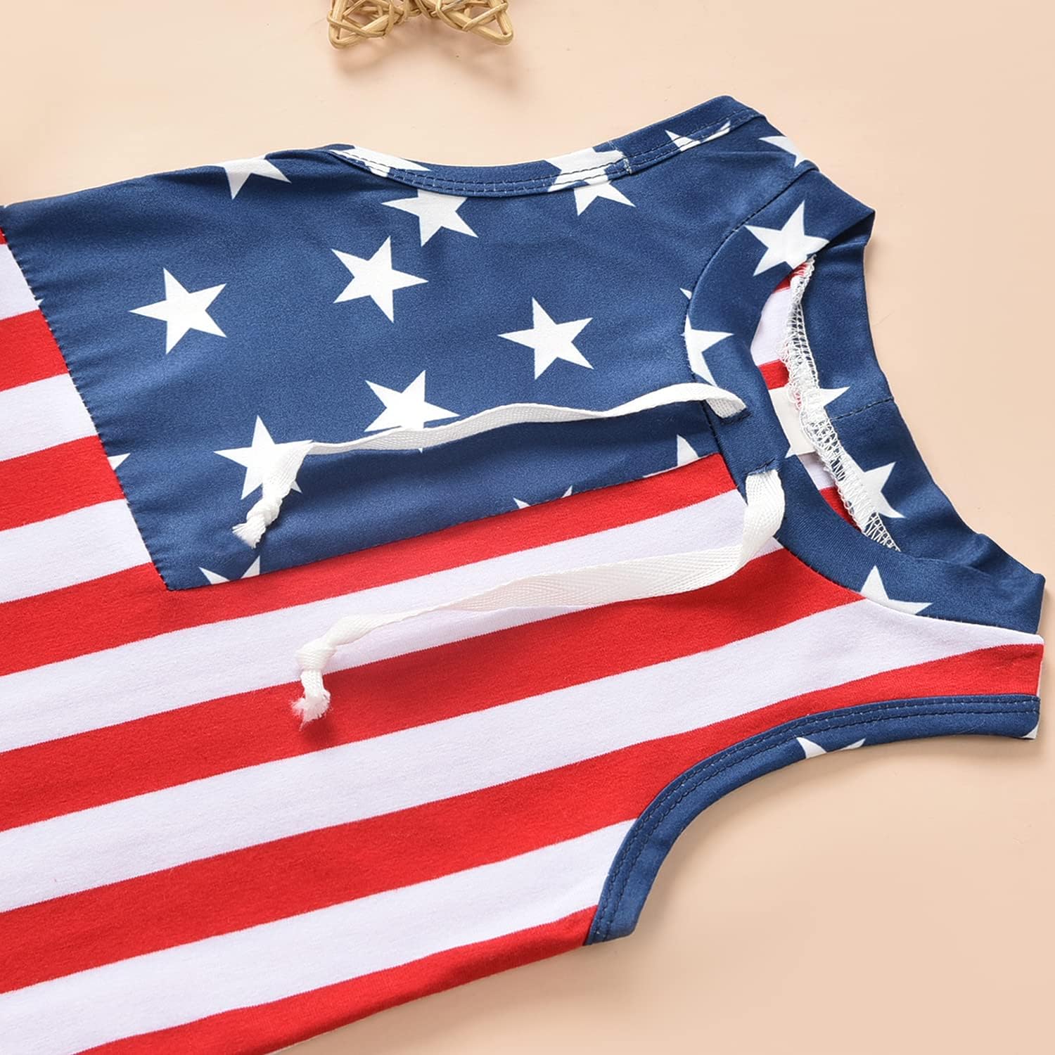 - Design: Trendy sleeveless footless design. Fourth of July theme American flag printed playsuit. Fashion design make your babies more energetic!