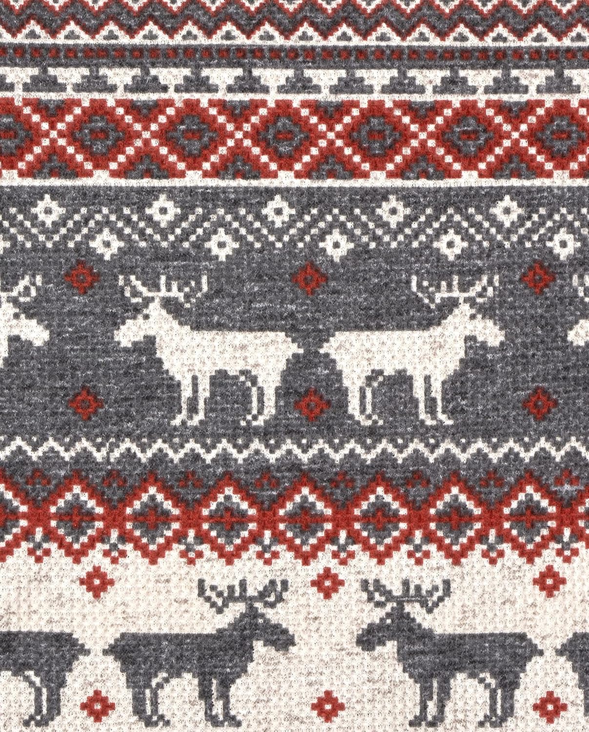 • DESIGN — Features long sleeves, rib-knit crew neck and sleeve cuffs, attached footies with elasticized back ankles and allover moose fairisle print
