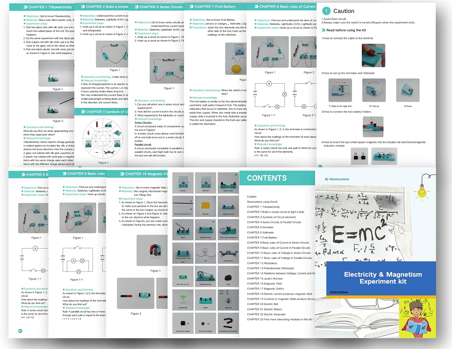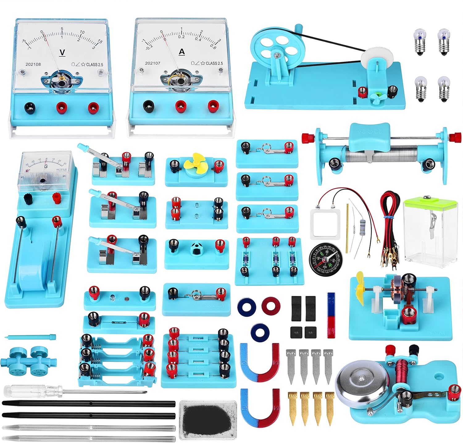 - ๐ขThe Most Complete Bundle for Electricity & Magnetism Learning!Find more unique items in this kit,such as Light control led, Magnetic switch, Joule's first law experiment module... โ๏ธGive your kids an interesting, hands-on introduction to Electricity and Magnetism with this physics gifts. This set offers more than 50 do-it-yourself experiments that will give your child an entertaining, concrete education on how electronics and magnetism work.