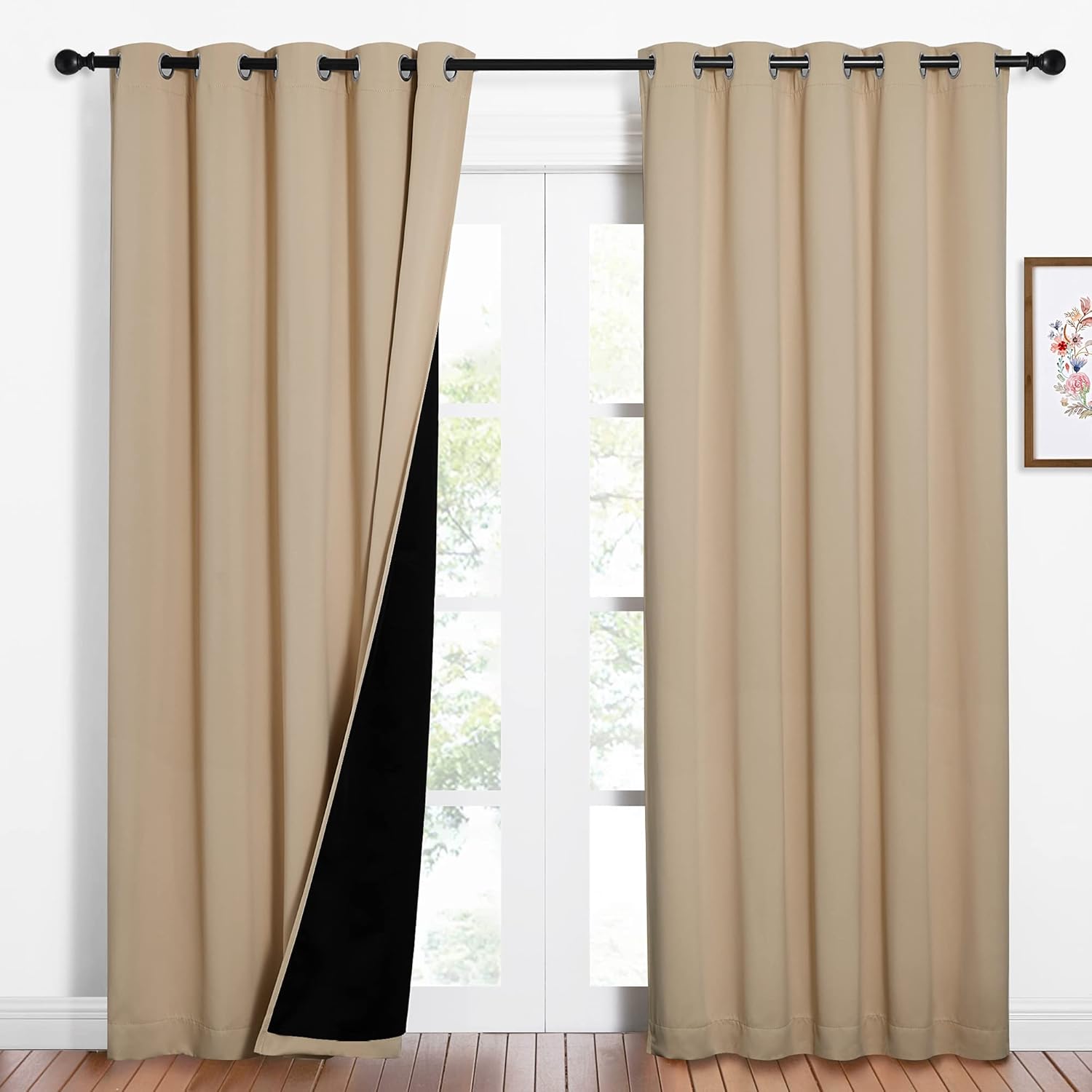 NICETOWN Living Room Completely Shaded Draperies, Privacy Protection & Noise Reducing Ring Top Drapes, Black Lined Insulated Window Treatment Curtain Panels(Biscotti Beige, 2 Pieces, W62 x L84)