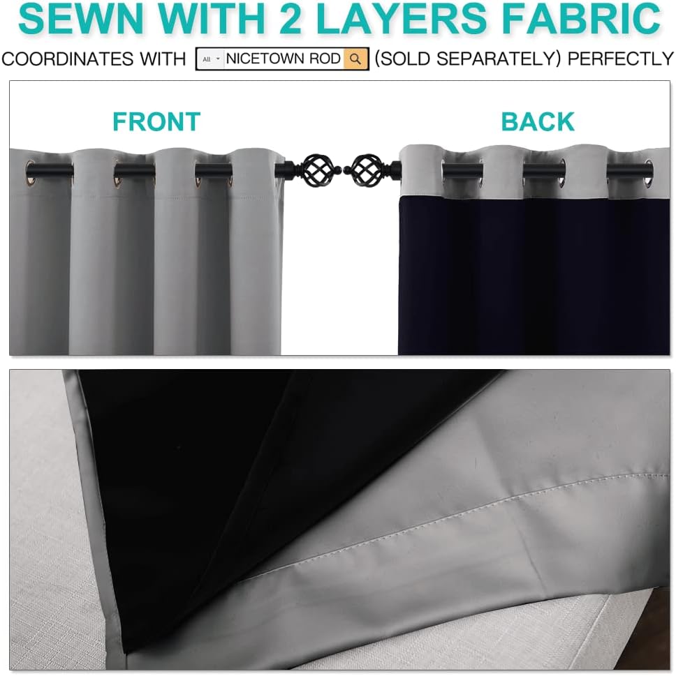 NICETOWN 100% Blackout Curtains with Black Liners, Thermal Insulated Full Blackout 2-Layer Curtains, Energy Efficiency Window Draperies for Dining Room (Silver Grey, 2 Panels, 52-inch W by 45-inch L)