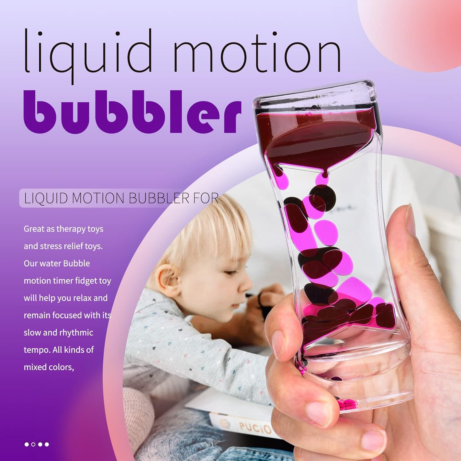 - 3.Great as therapy toys and stress relief toys. Our water Bubble motion timer fidget toy will help you relax and remain focused with its slow and rhythmic tempo. All kinds of mixed colors, charming and slow.