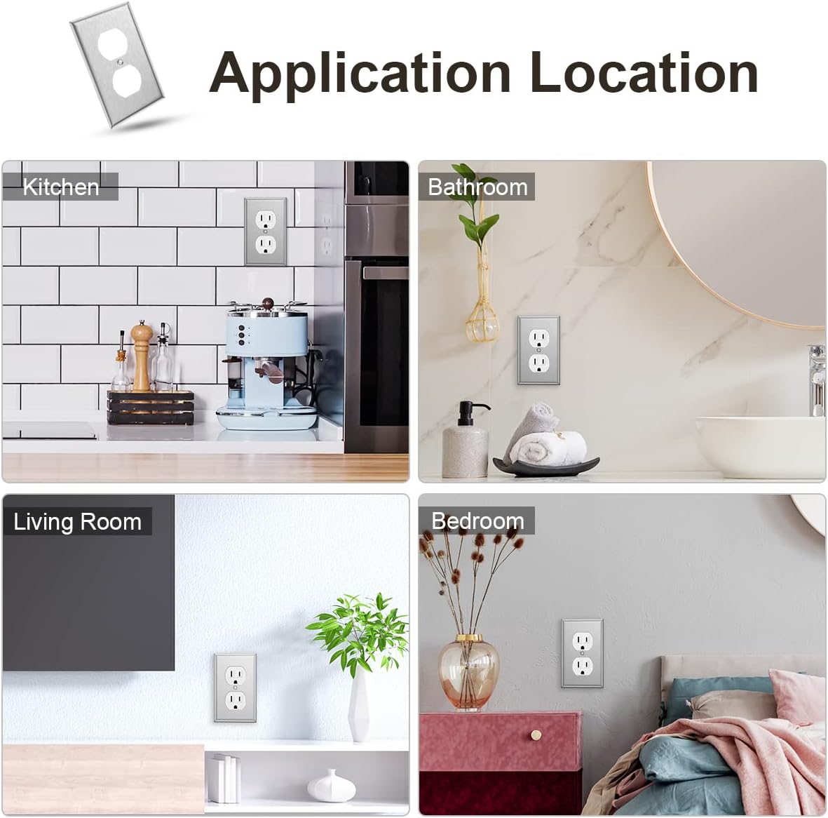 - Metal Wall Plate: Duplex outlet plate is made of stainless steel, the durable metal wall plate can provide high-impact resistance against heavy force. Corrosion resistant material helps extend wall plate life in extreme environments.