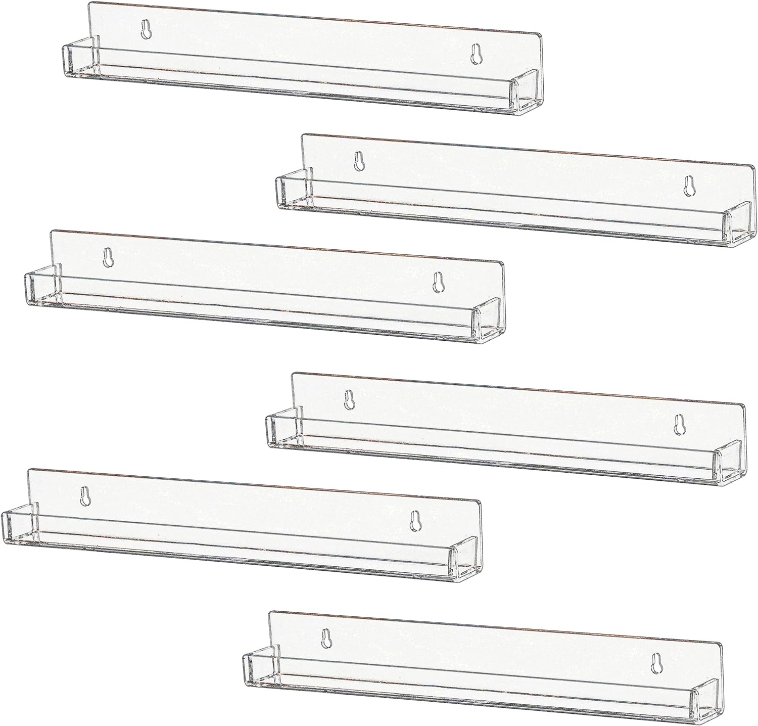 - SIZE:15x1.6x2(LxWxH)inch/each,5mm thickness.The inner diameter of the acrylic shelf is 1.25"(Please confirm that the bottle diameter is not greater than 1.25" before purchase)package include 6 pieces of acrylic wall book shelf and install hardware,if use it as nail polish organizer,holds up to 66-90 bottles of nail polish (actual number may vary based on size and shape of bottles),each wall floating shelf is individual,It can be installed in a row or separately according to your preference