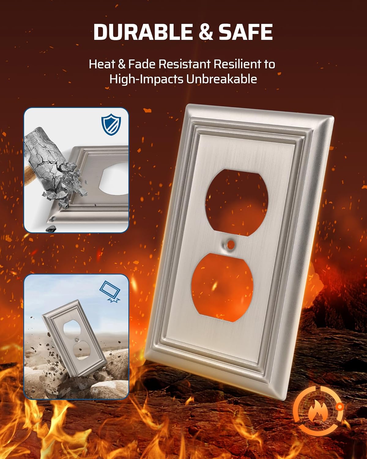 - 【Stylish Outlet Cover】Brushed nickel finish, gives your home a modern look, perfect addition to upgrade the look in your home, such as the kitchen, living room, bedroom