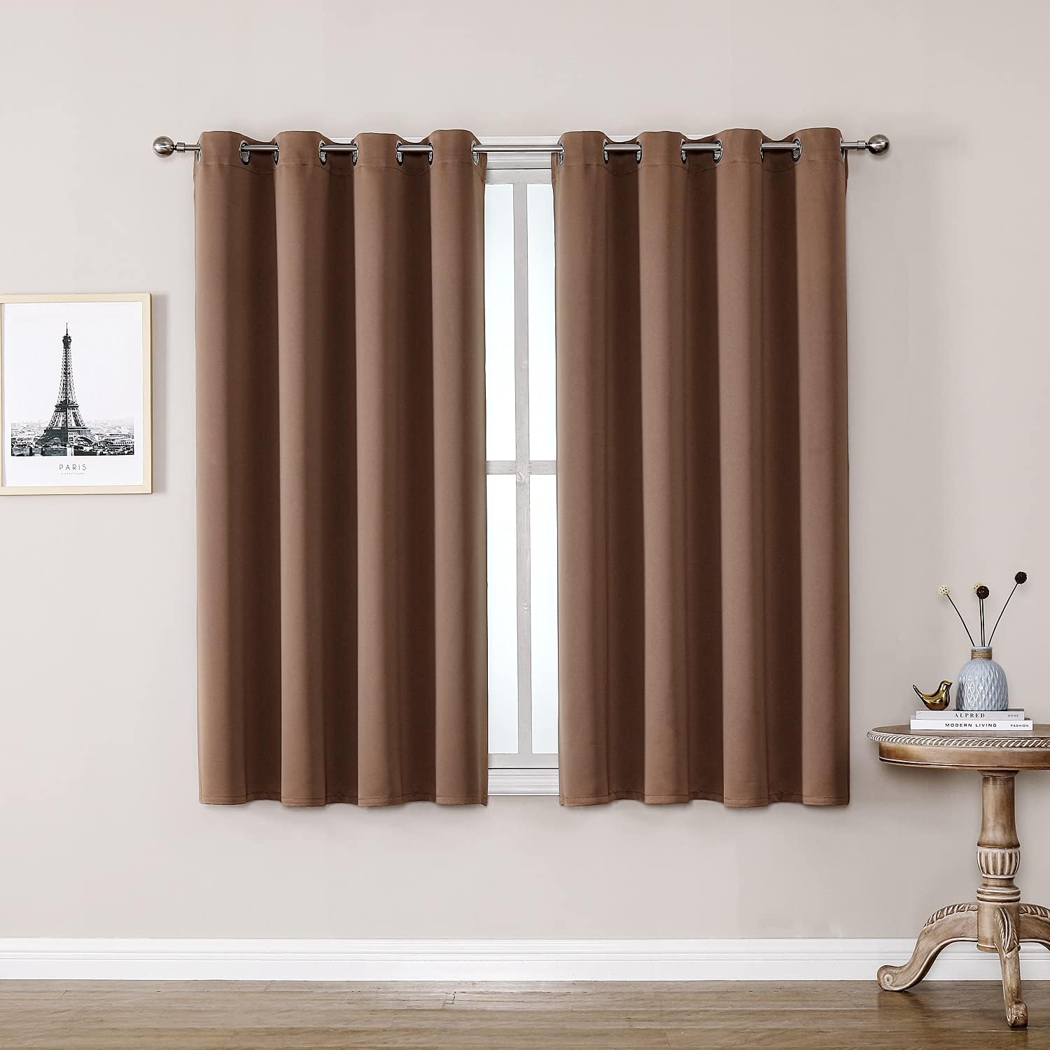 ChrisDowa Grommet Room Darkening Curtains for Bedroom and Living Room - 2 Panels Set Thermal Insulated Blackout Curtains (Cappuccino, 52W x 54L)