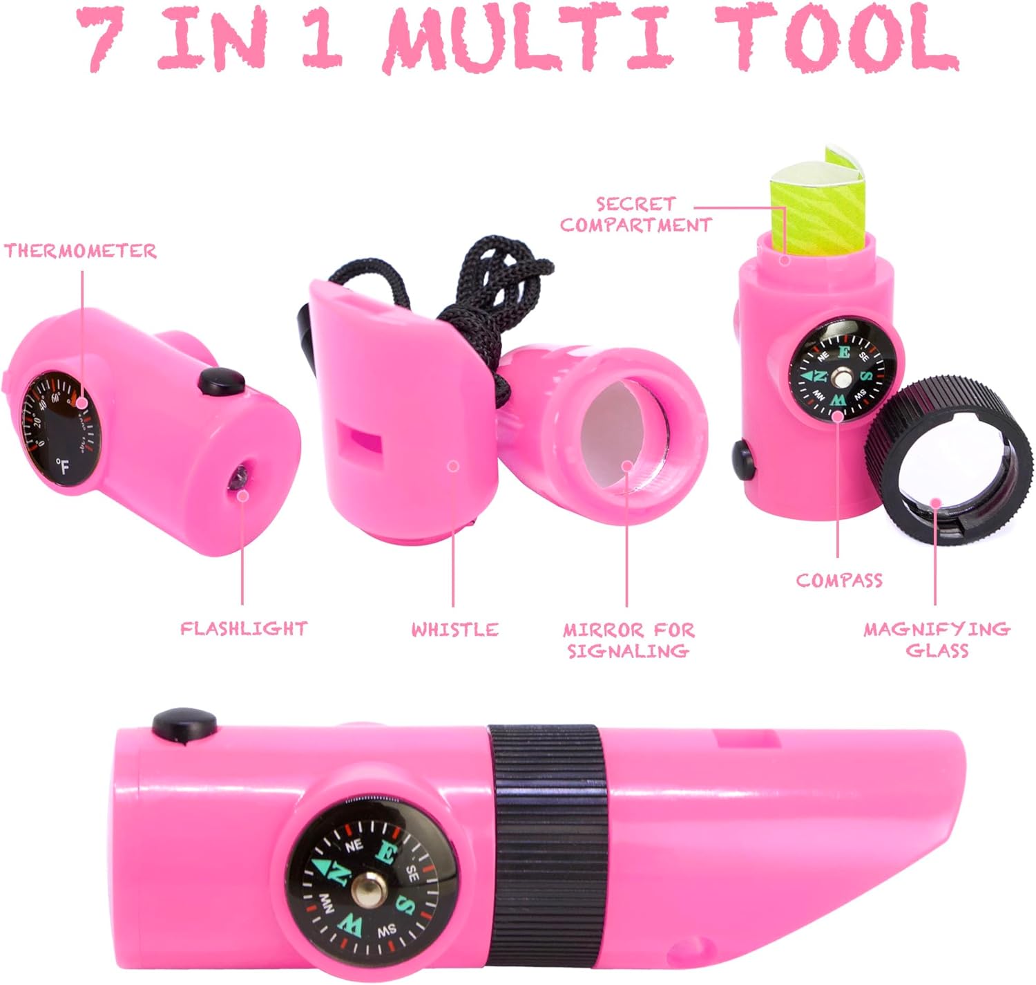 - ๐ 7 IN 1 MULTI TOOL contains FLASHLIGHT, MIRROR for signalling, MAGNIFYING GLASS, WHISTLE for quick location, THERMOSTAT, COMPASS, and SECRET COMPARTMENT.