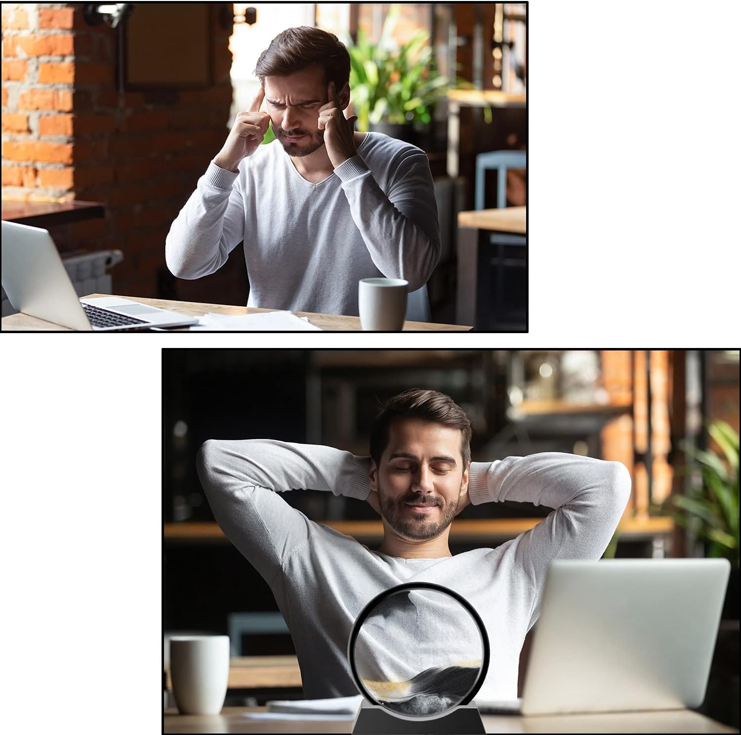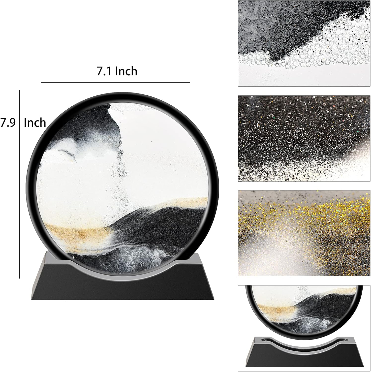 Liquid Motion Sandscape Round Moving Sand Art Sensory Toy Anxiety Fidget ADHD Relaxation Toy Home Office Desktop Decoration (Black, 7-in)