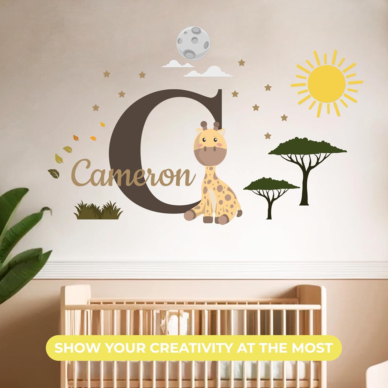 CRYPTONITE Personalized Name Jungle Animals Vinyl Wall Decor I Nursery Wall Decal for Baby Boy & Girl Decoration I Stickers for Kids I Multiple Options for Customization (B. Giraffe)