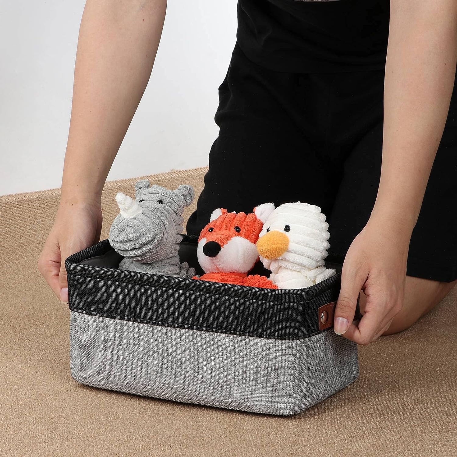 DULLEMELO Small Storage Baskets for Shelves, Small Fabric Collapsible Rectangular Storage Bins for Shelves, Closets, Nursery, Home, Office, Empty Gift Baskets (6-Pack, Black&Gray)
