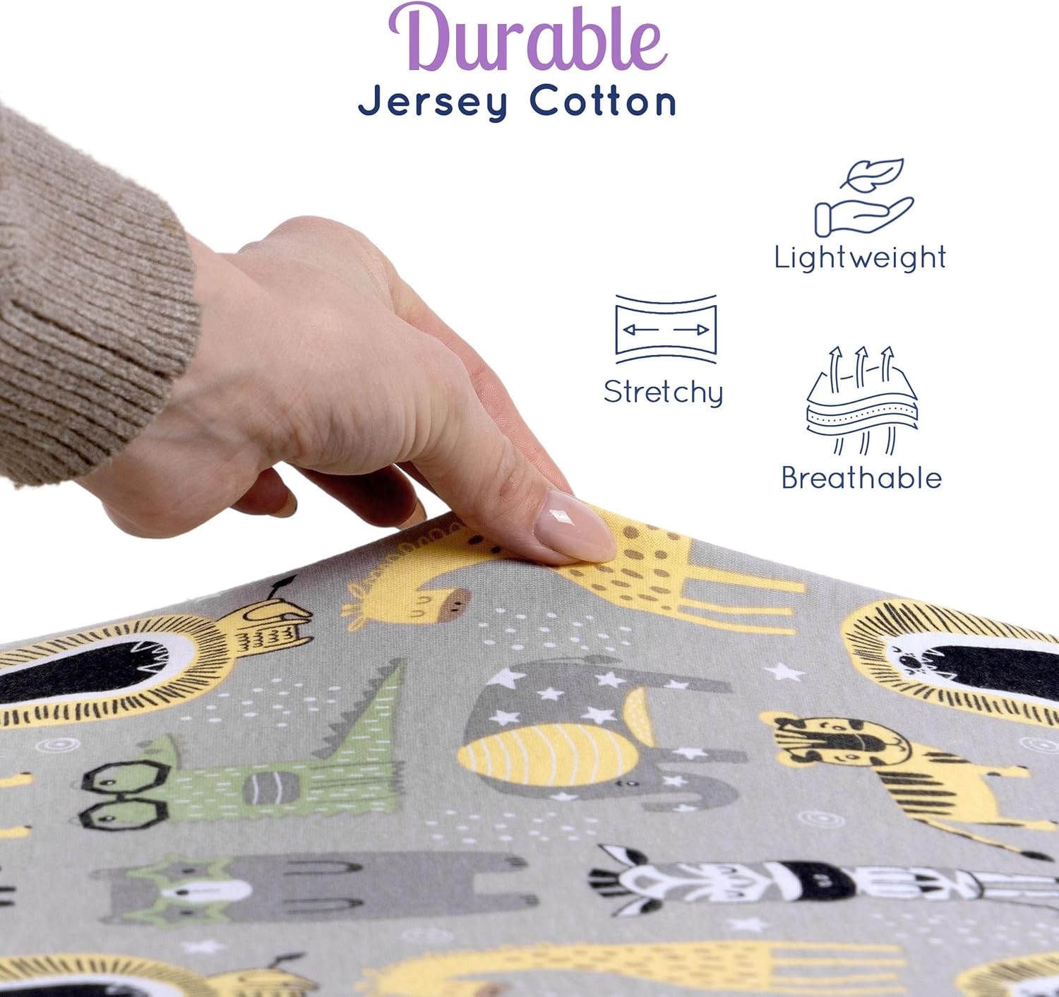 - ๐FUN & CHARMING DESIGN - Our crib mattress sheets features an adorable Safari Jungle pattern. This charming design brings the calming essence of the sea into your baby boy nursery.