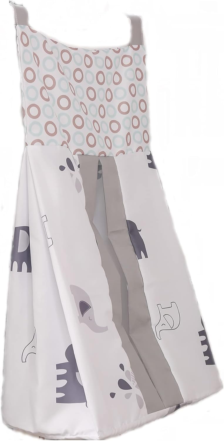 6 PCs Grey White Elephant Nursery Crib Bedding Set Quilt, Fitted Sheet, Skirt, Window Valance, Blanket, Diaper Organizer Baby Boy Elephant Theme Cot Bedding Set