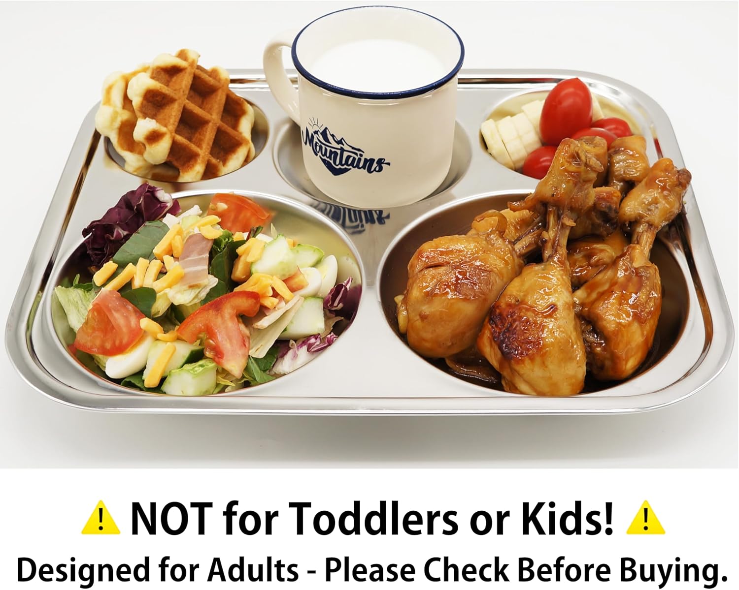 Korean Stainless Steel Divided Plates, Food Grade 304 Tray Large Size for Adults, Teens, Picky Eaters, Campers, BPA Free, Diet Portion Control, Serving Platter, Dinner Snack, Set of 2